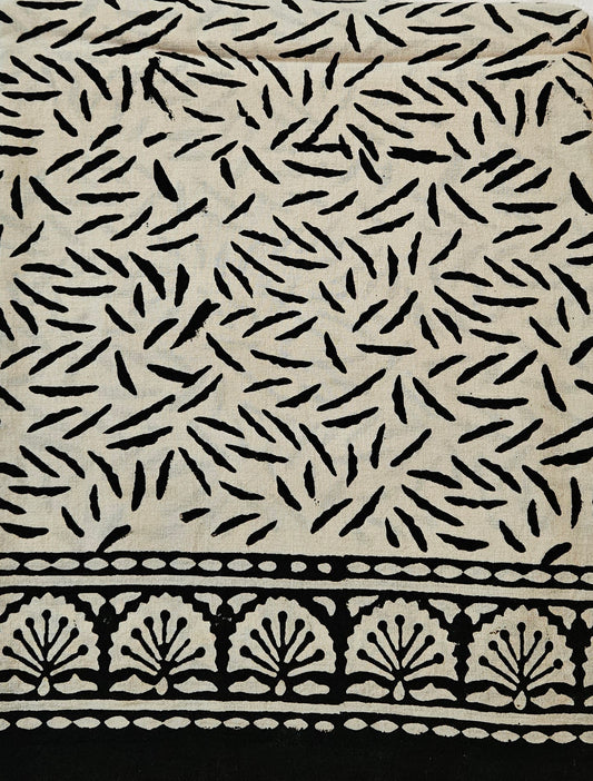 Beige'n'green Sanganeri print cotton suit with chiffon dupatta