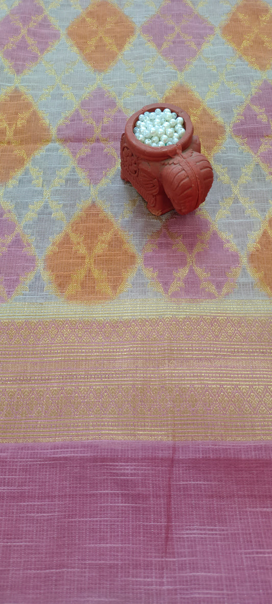 Banarsi cotton Kota peach suit with multi colour Kota dupatta.