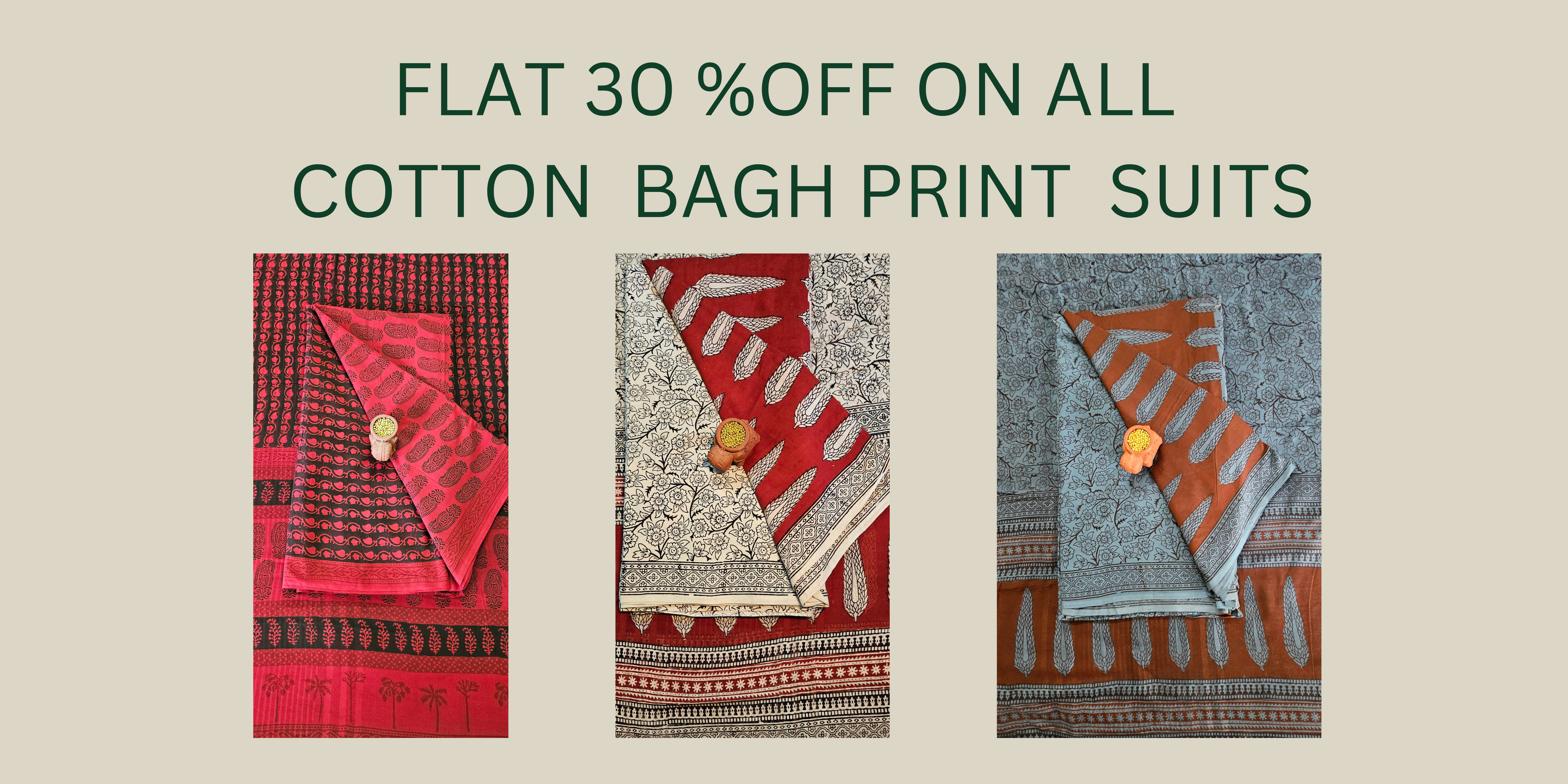 Beige'n'green Sanganeri print cotton suit with chiffon dupatta