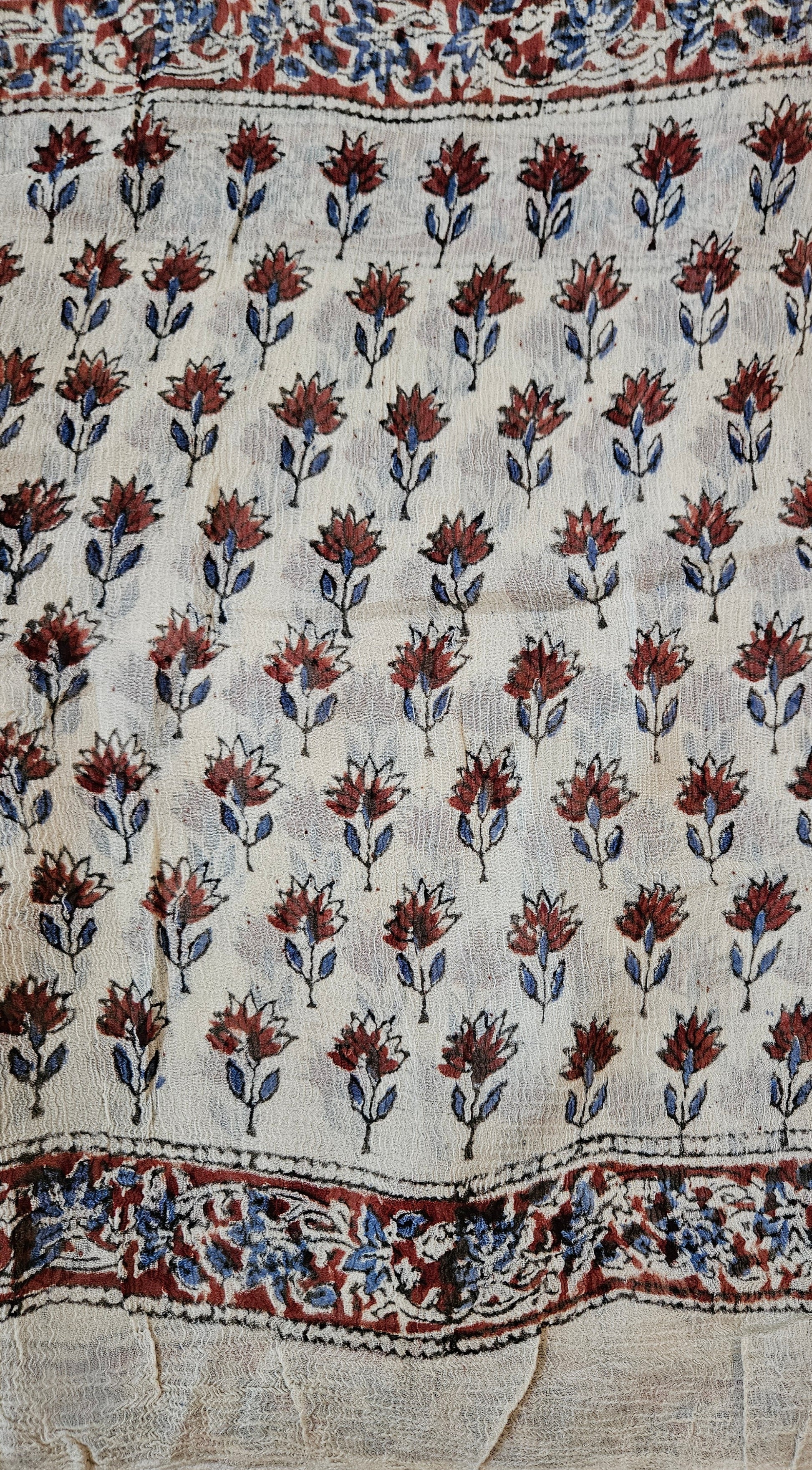 Chiffon dupatta with block print all over and border printed on both pallus-2.50Mtrs.