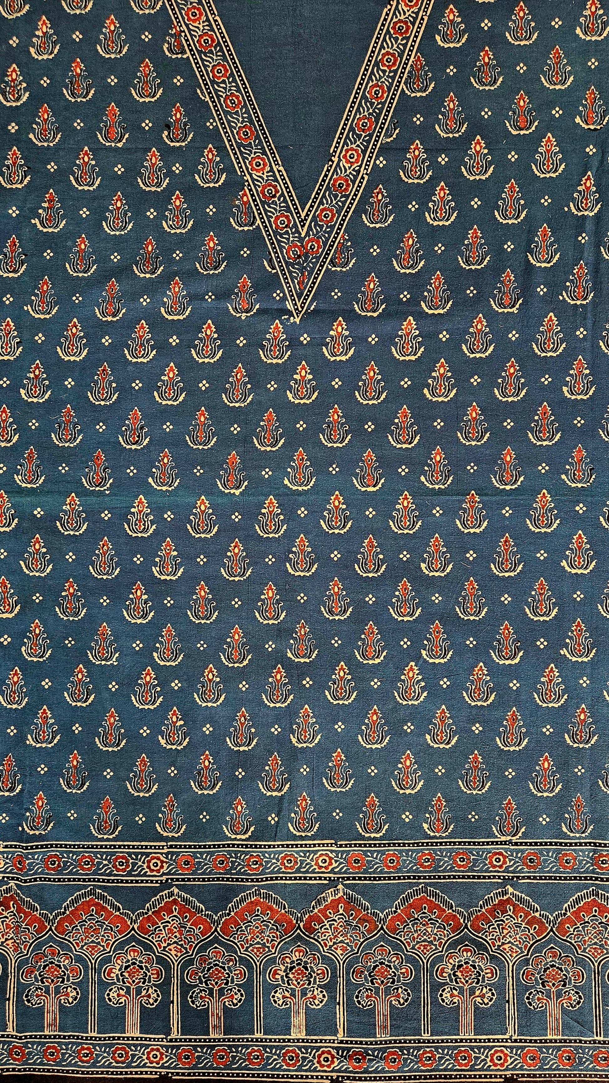 Blue maroon'n'white ajrakh print cotton kurta material, length -2.50cms.
