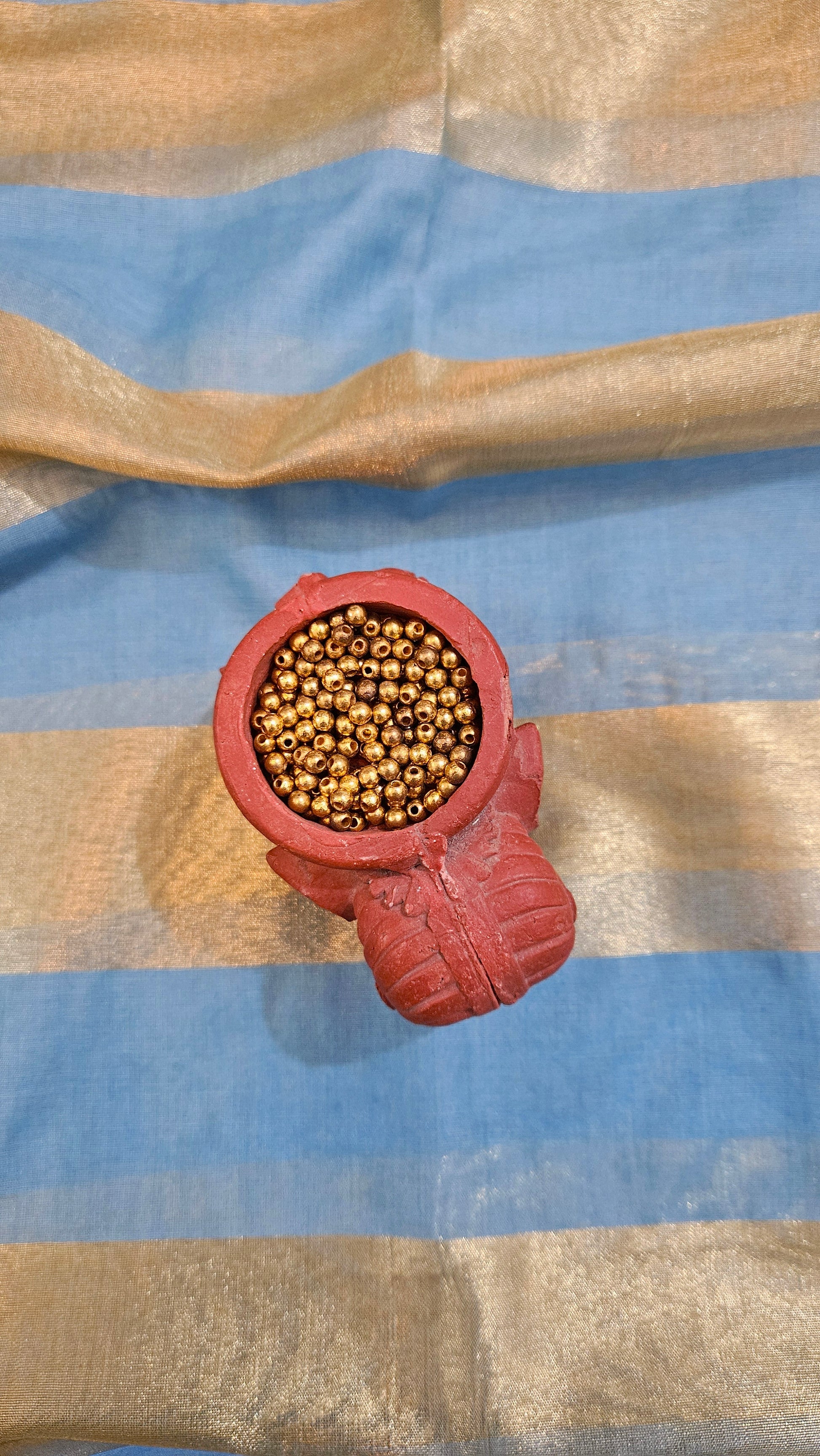 Blue'n'gold striped dupatta in tissue and chanderi -2.50 mtrs