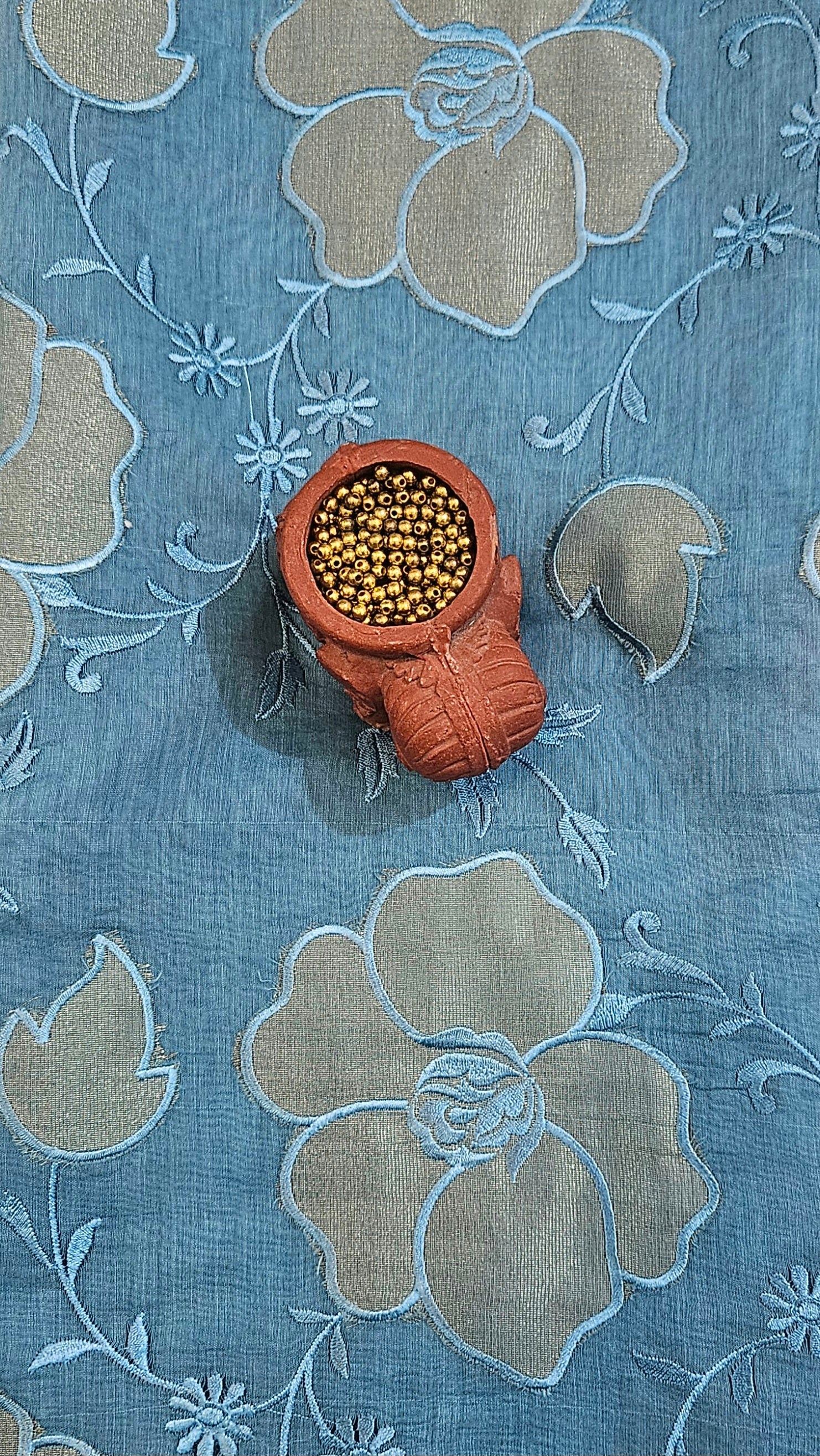 Blue'n'gold mul chanderi kurta material with tissue appliqué work and thread embroidery all over kurta -2.50mtrs