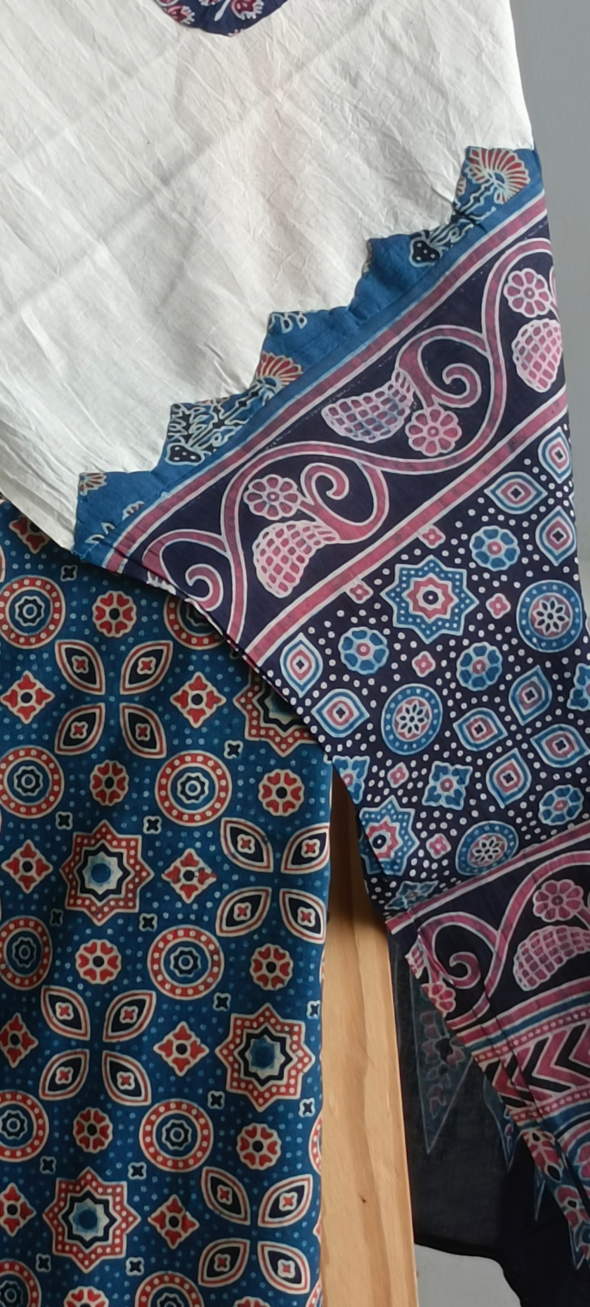 Blue'n'maroon ajrakh print cotton kurta Dupatta set.
