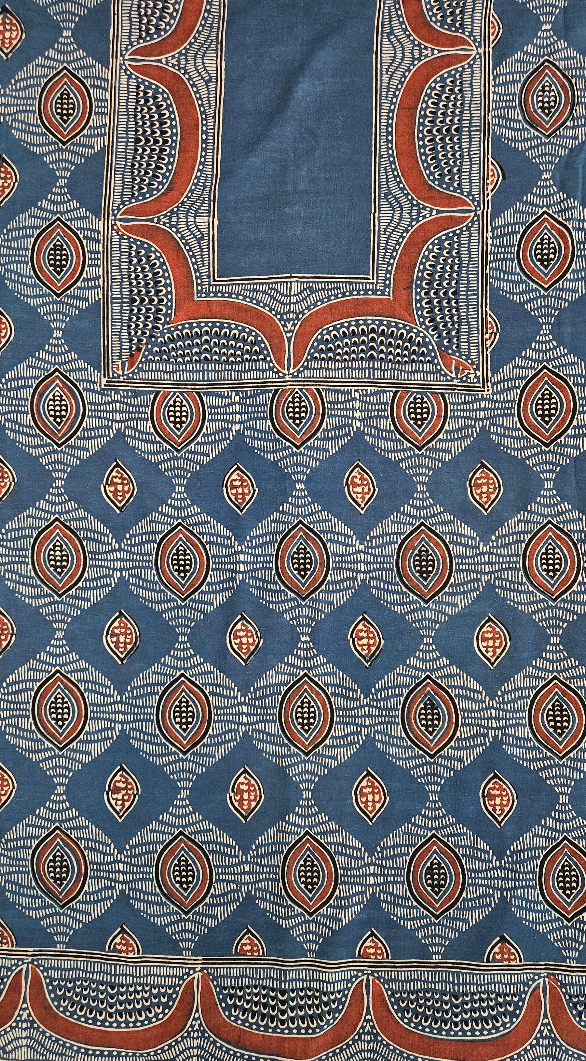 Blue'n'red ajrakh print with neck and ghera border cotton kurta material