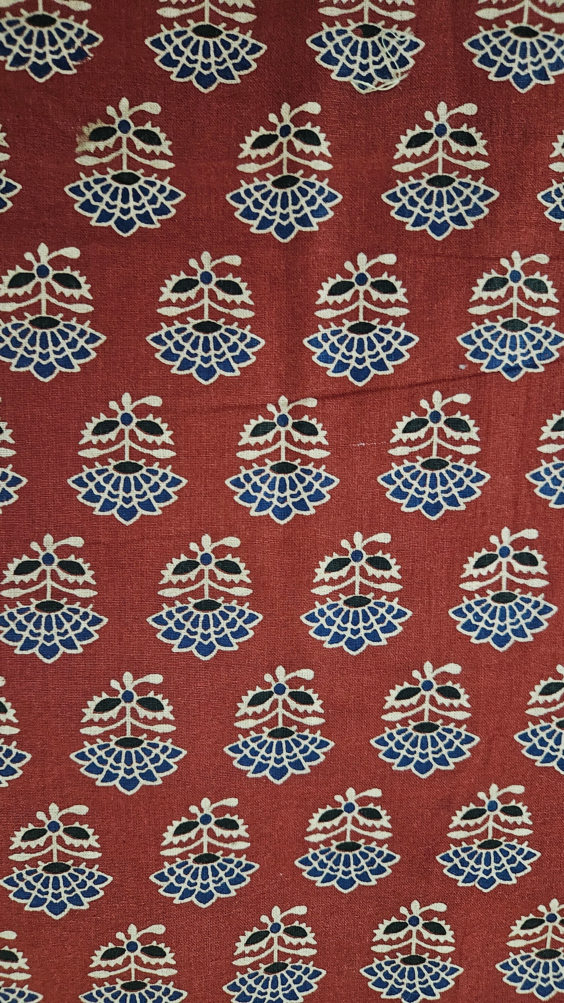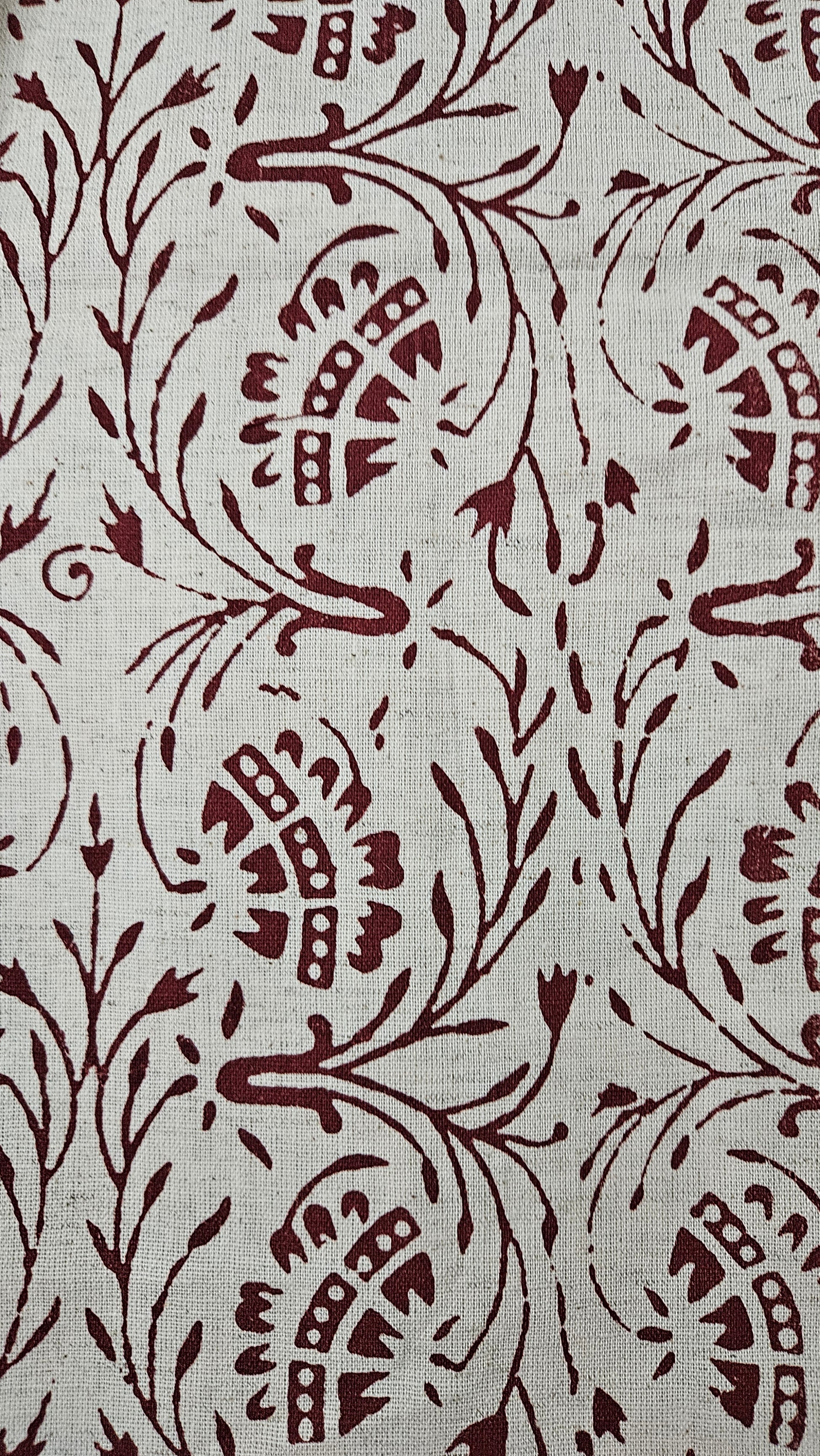 Brick red’n’off white gamthi print cotton kurta material with hand embroidered yoke. -2.40mtrs