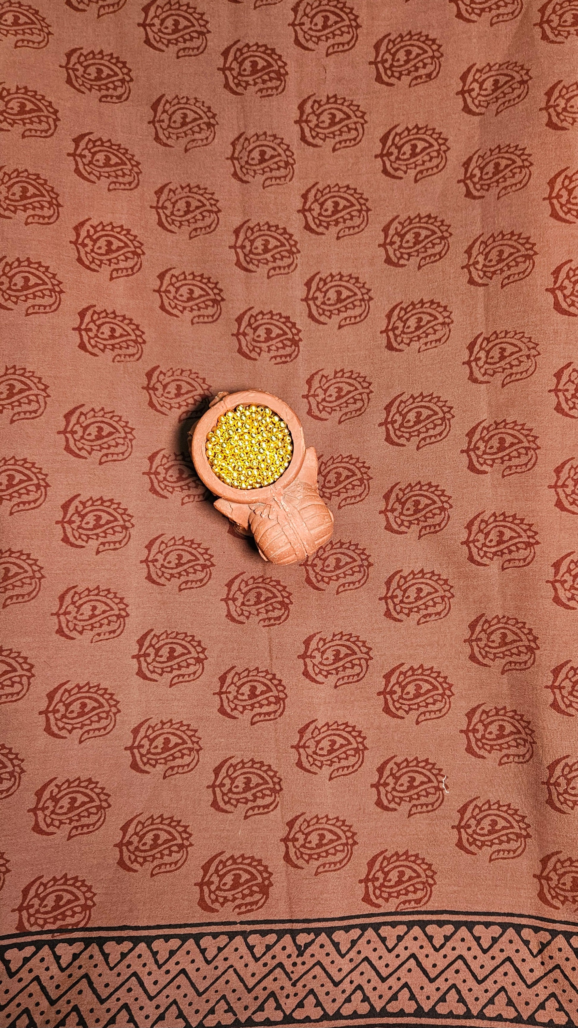 Brown'n'black bagh print cotton bottom material. -2.50mtrs