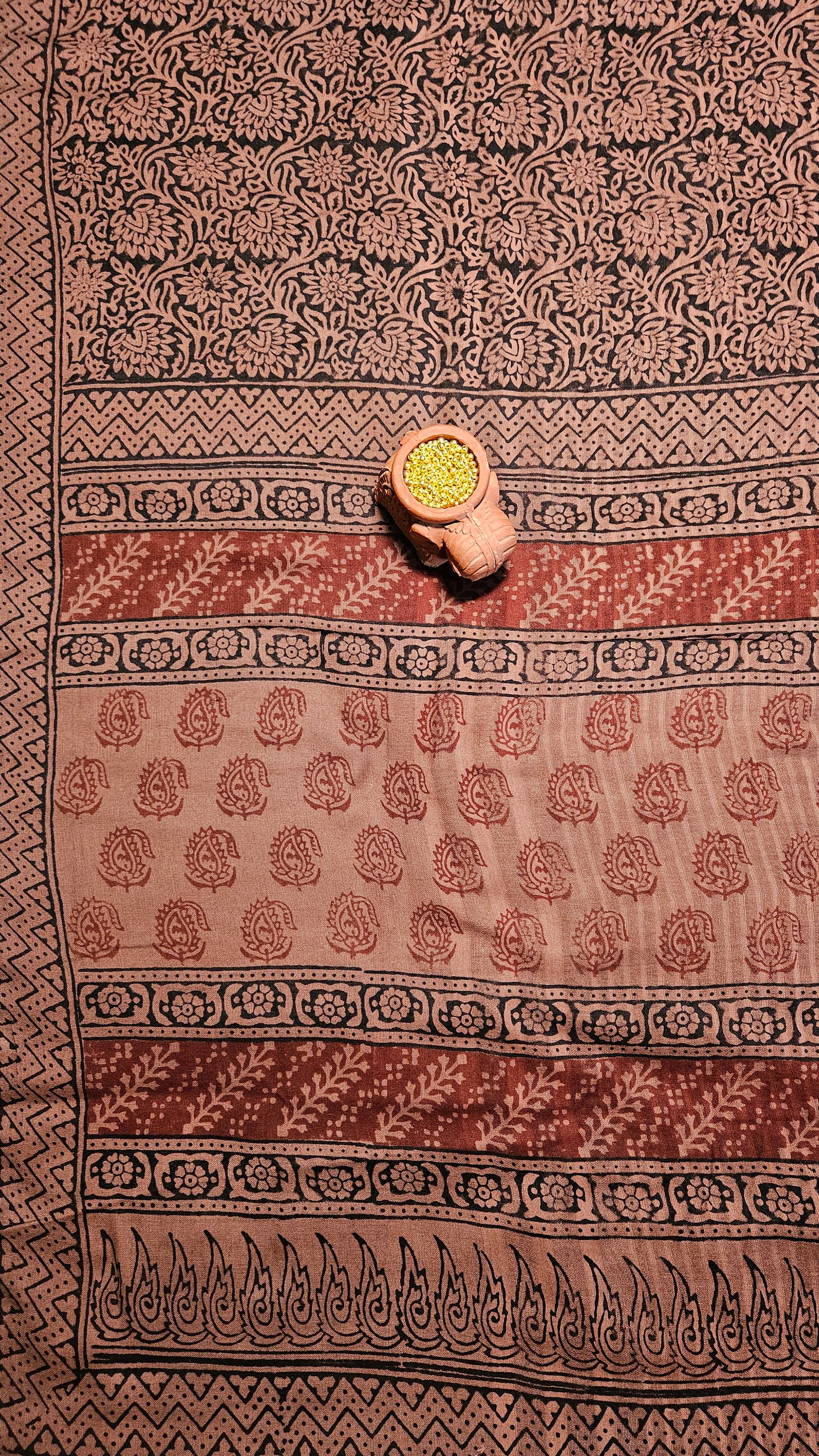 Brown'n'black bagh print mul cotton dupatta material -2.25mtrs