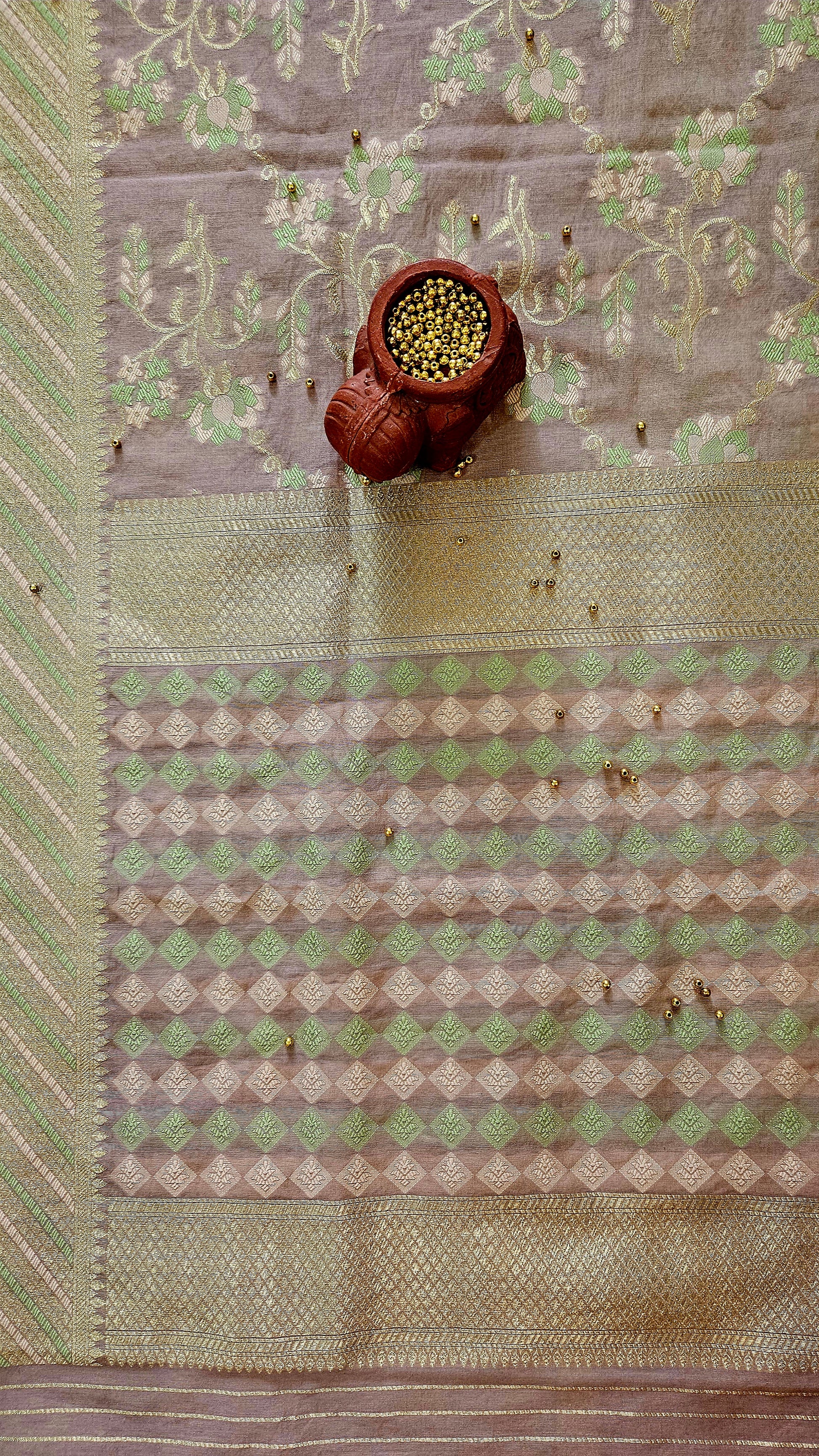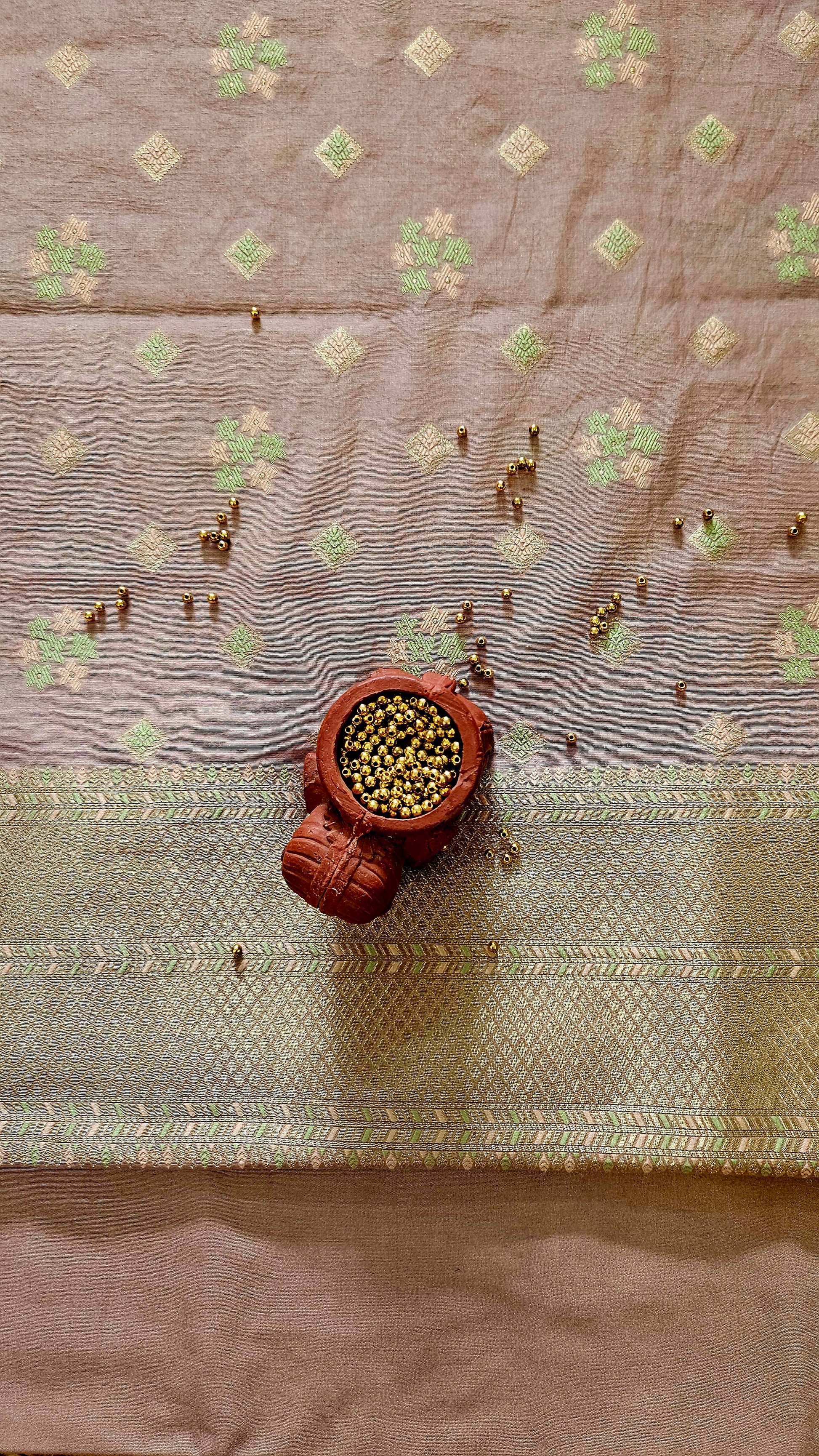 Dusk brown'n'green chanderi cotton banarsi jamdani suit