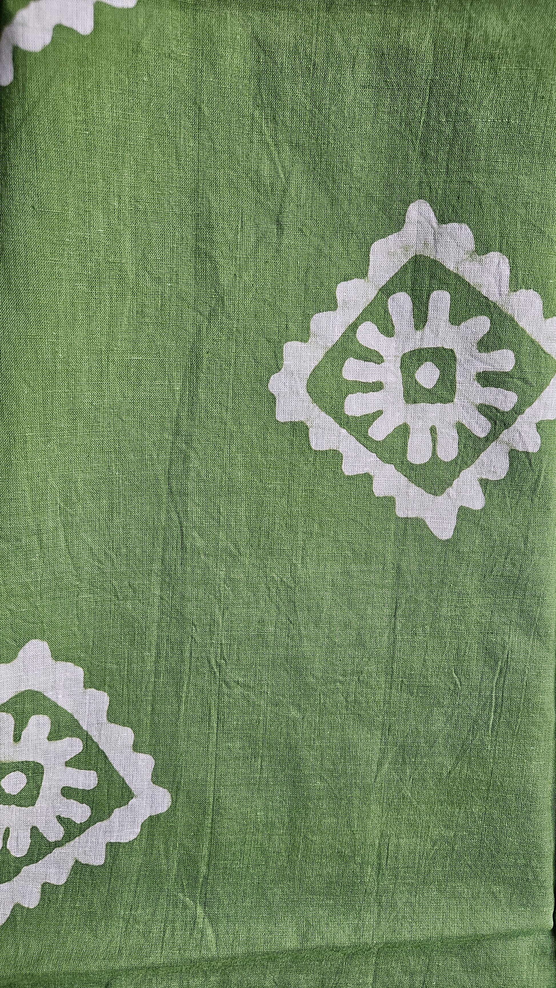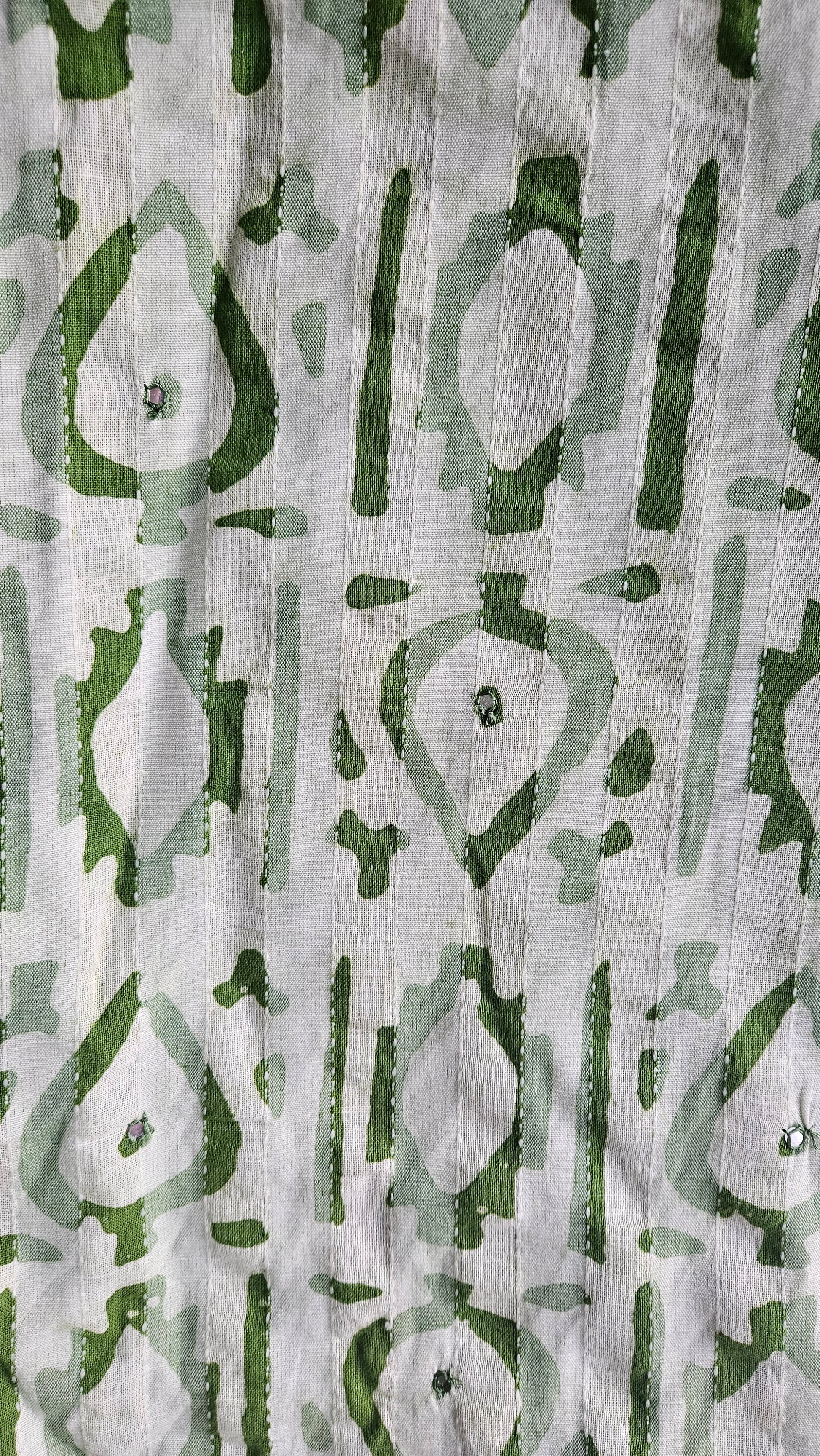 Green batik print kurta material with kantha work allover and striped back with kantha work - 2.50mtrs