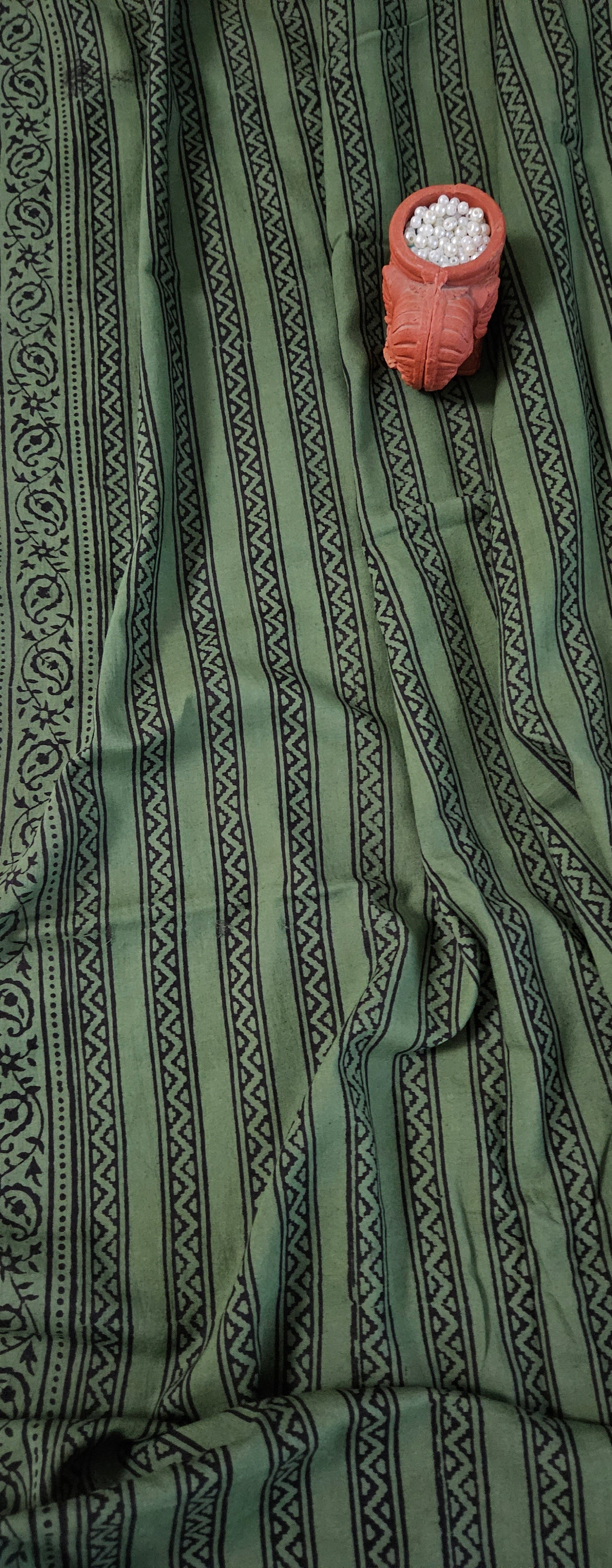 Green'n'black block print kurta material
