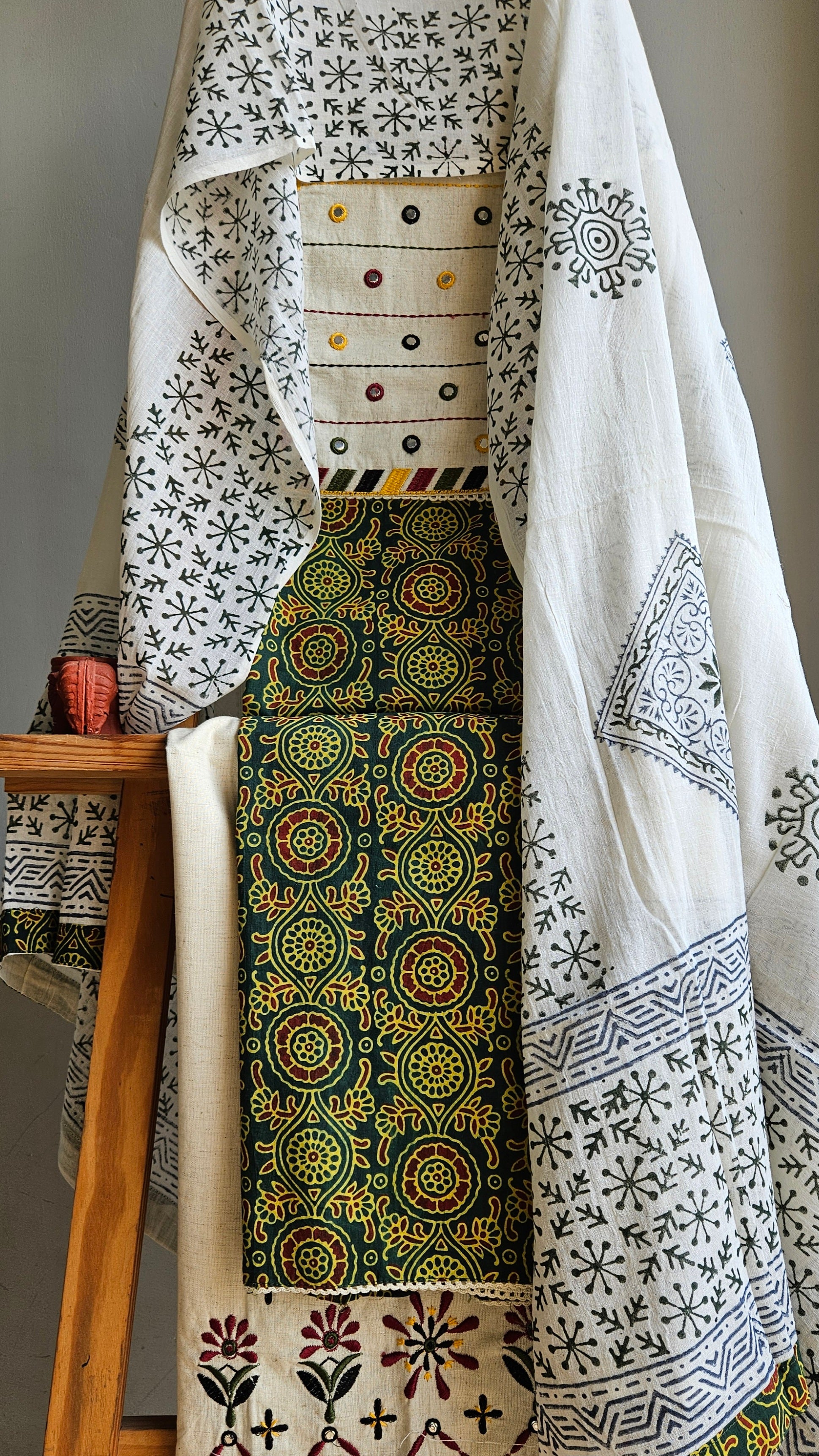 Green'n'yellow block print ajrakh cotton suit