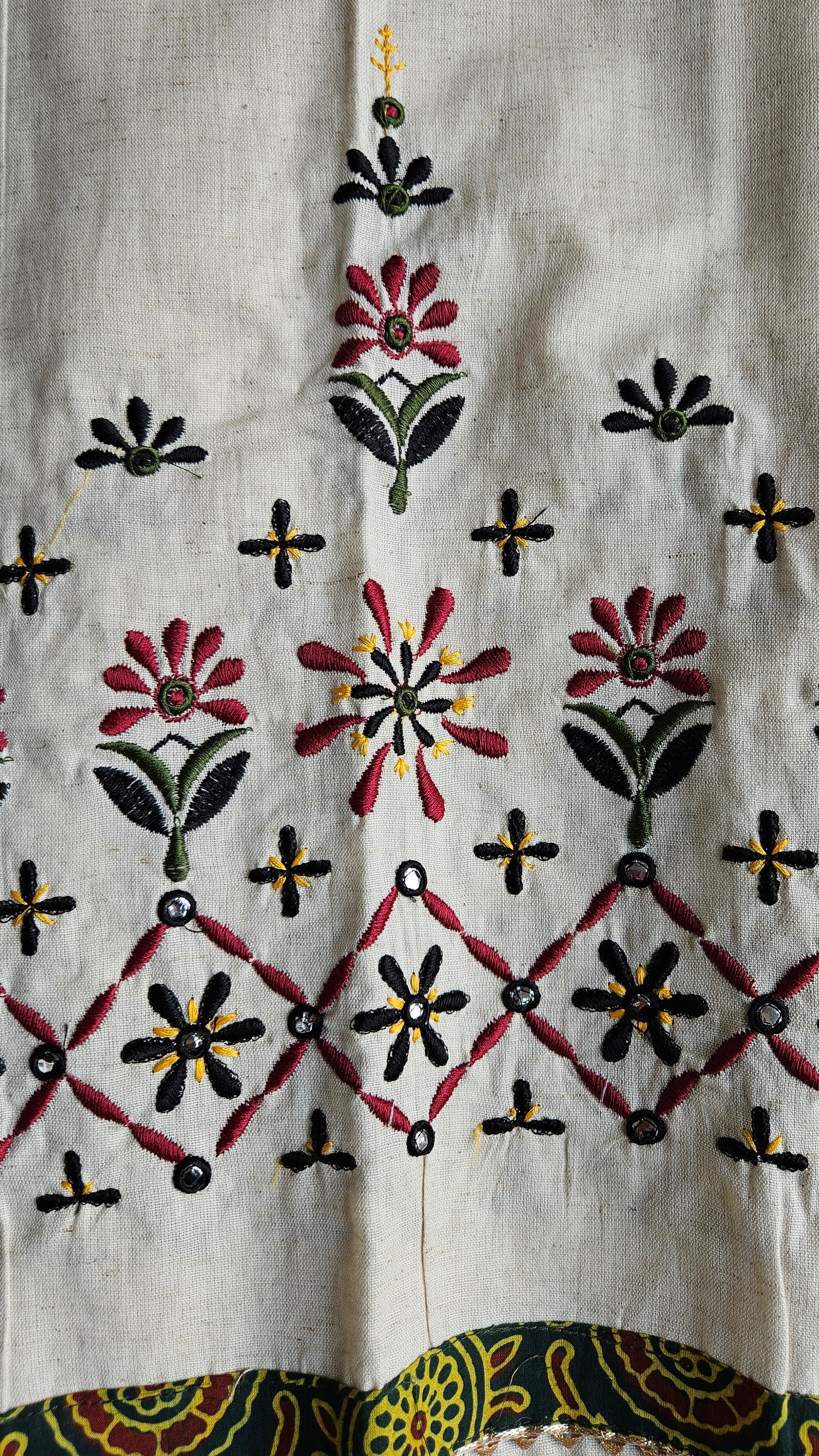 Beige colour khadi embroidered bottom material -2.35mtrs