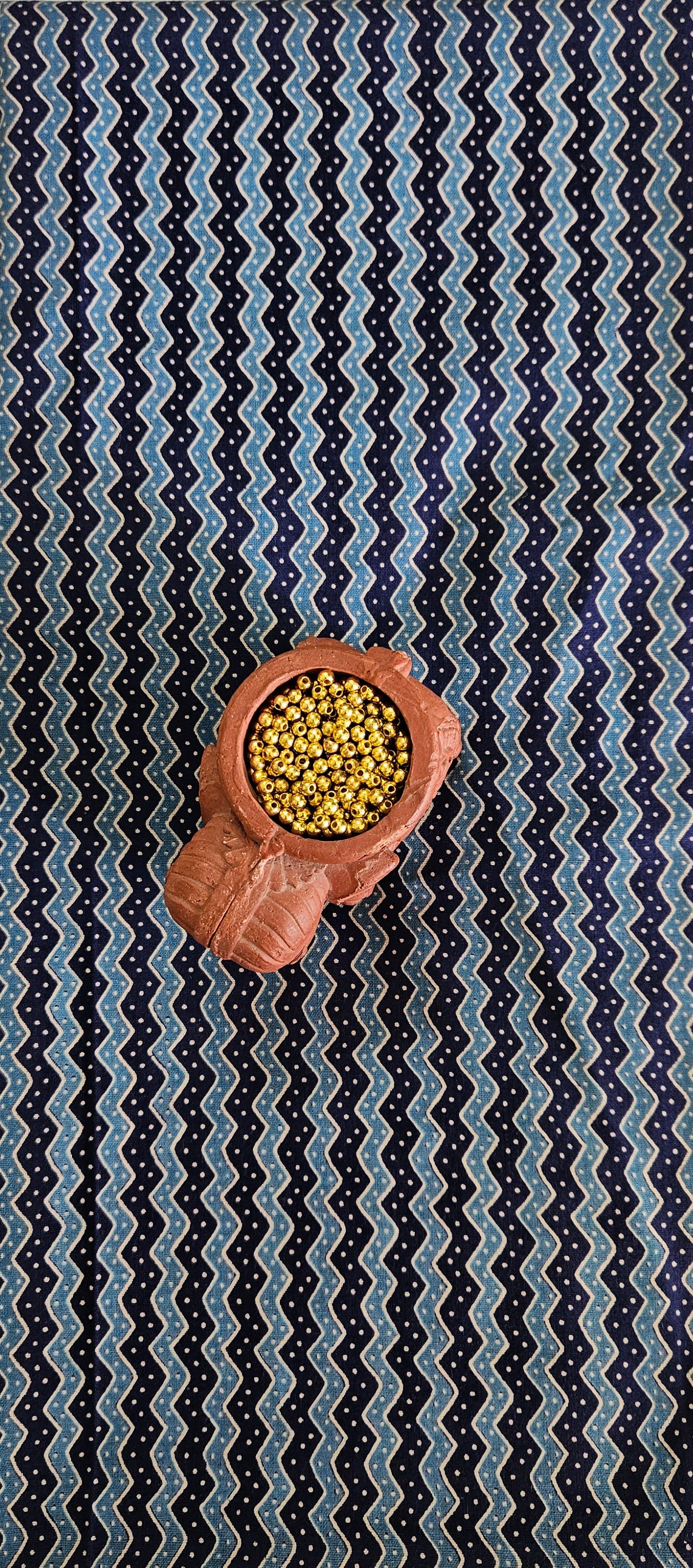 Indigo hand block print cotton bottom material. -2.40mtrs