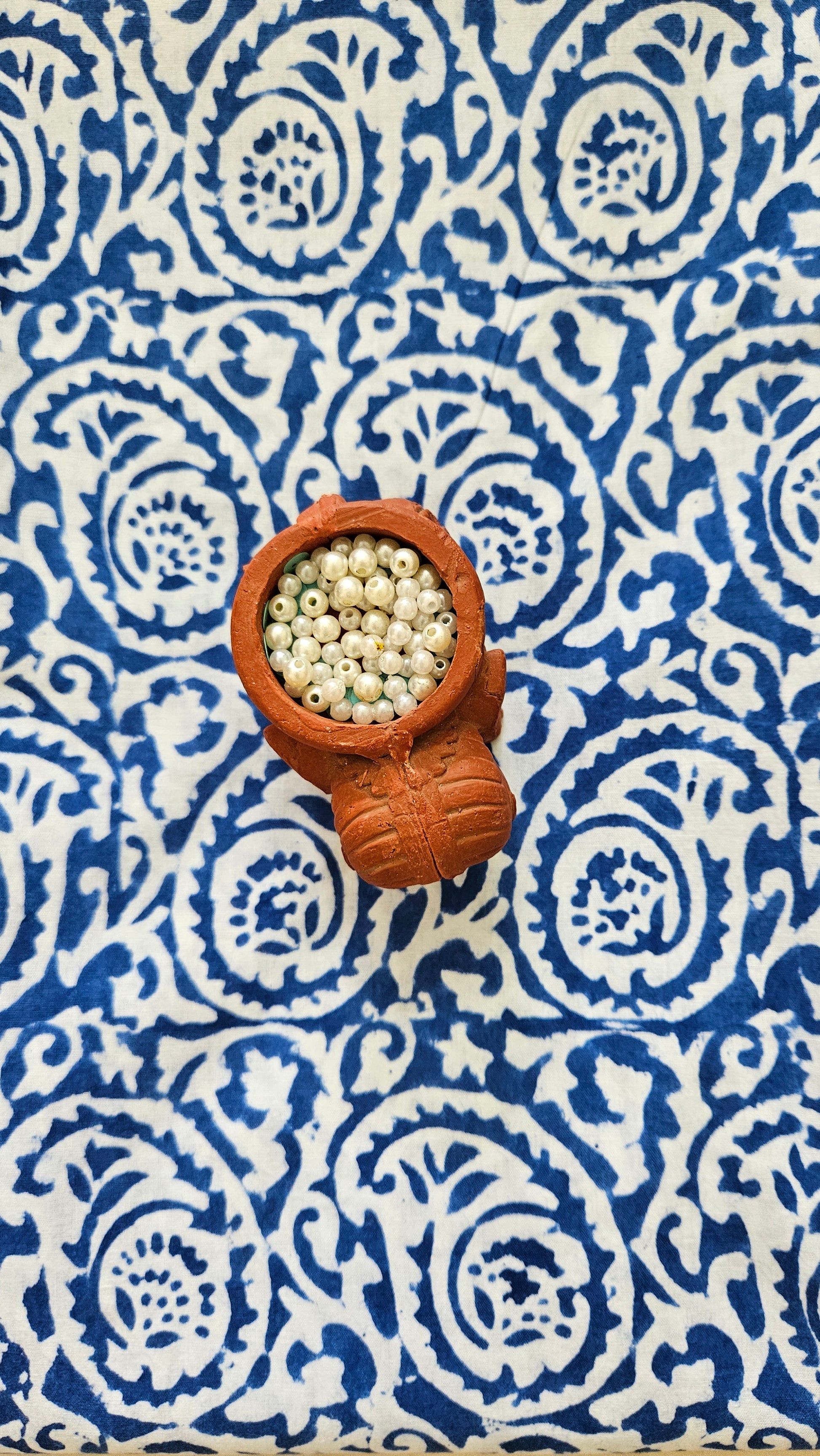 Indigo'n'white baroda print bottom material -2.25Mtrs.
