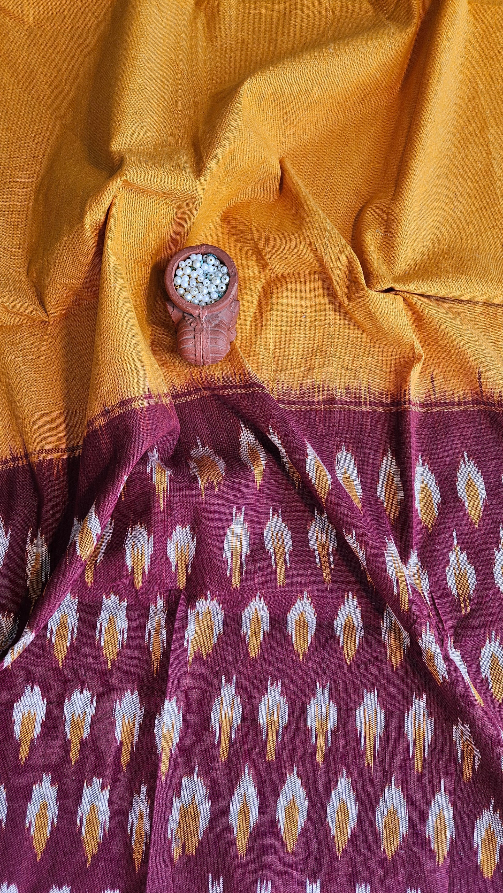 Maroo'n'mustard ikat weave cotton kurta material -2.50mtrs.