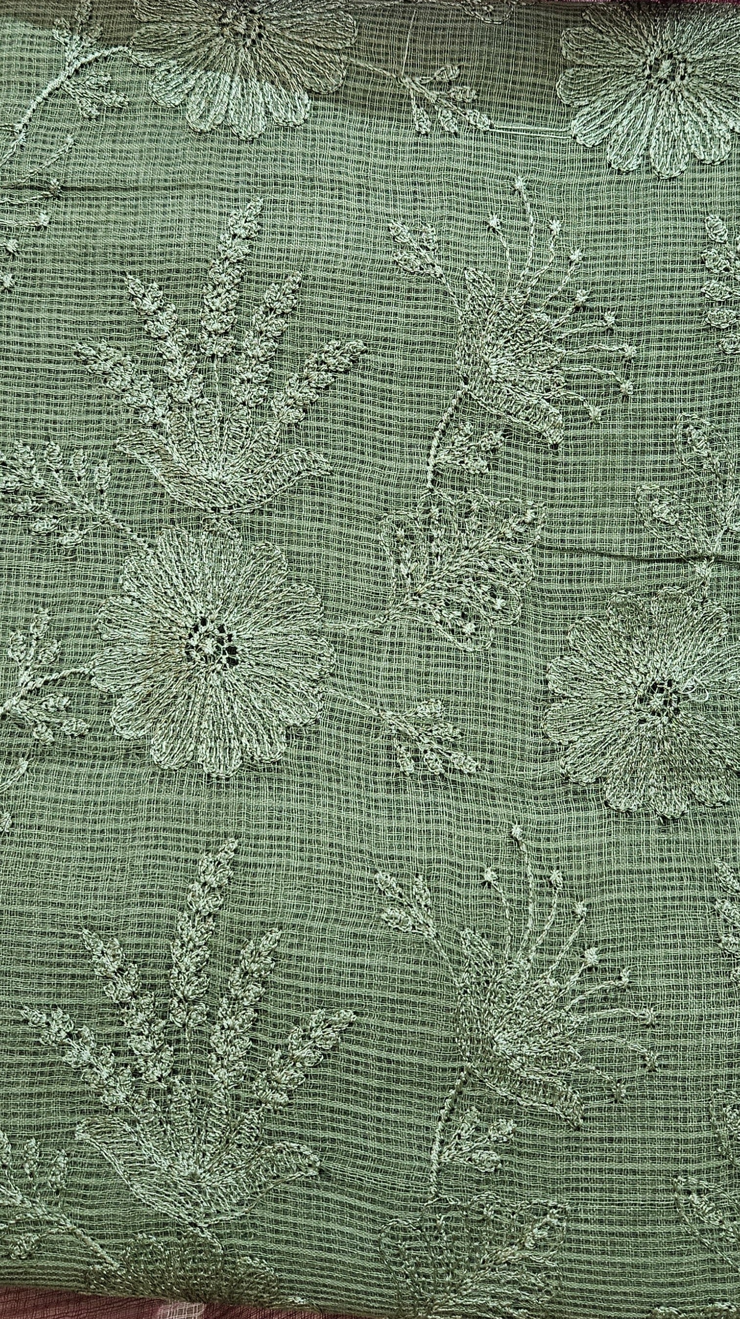 Mehandi green Kota kurta material fully thread embroidered -2.50Mtrs