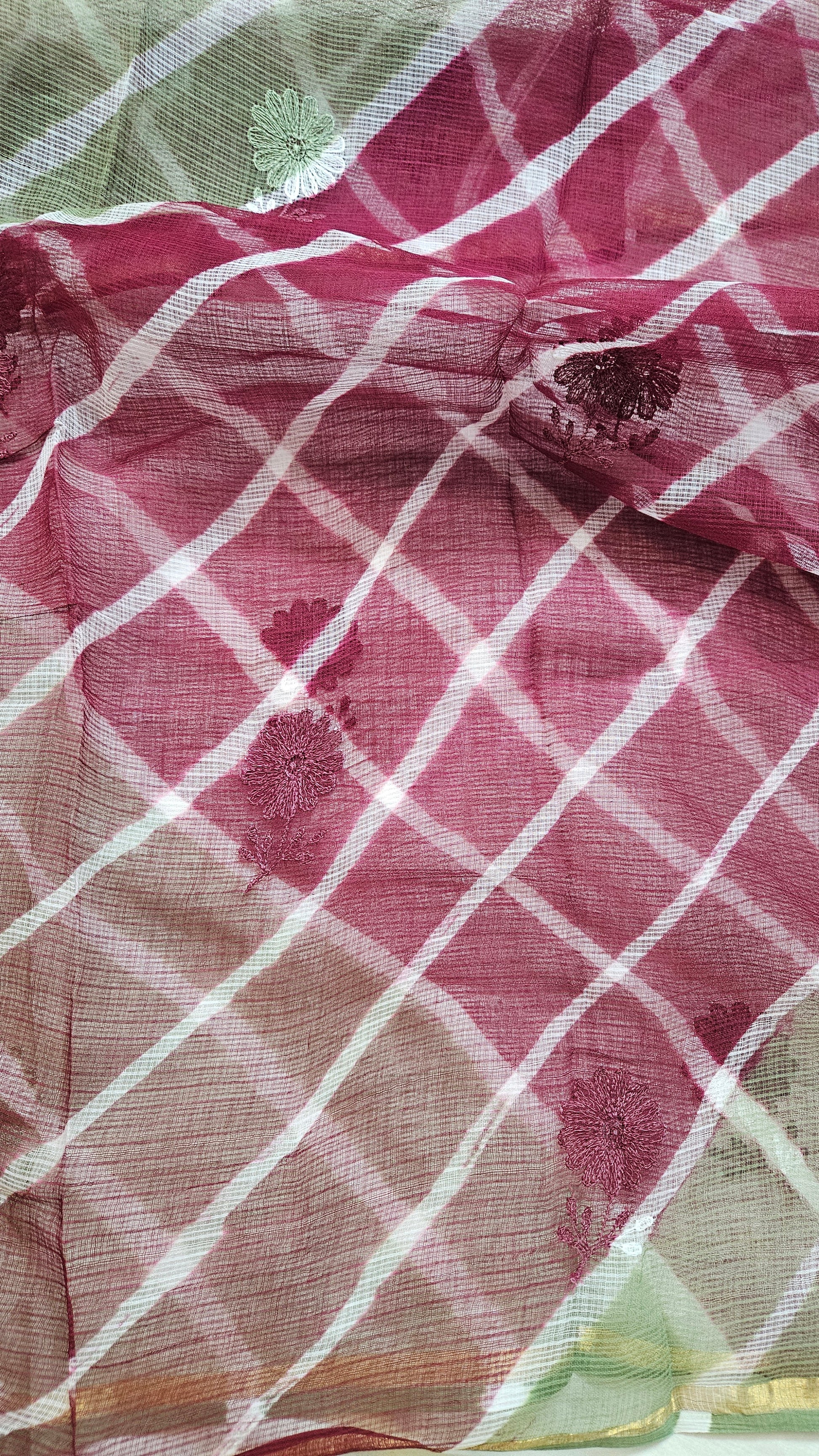 Mehandi green'n'maroon Kota dupatta with embroidered motifs -2.50Mtrs.