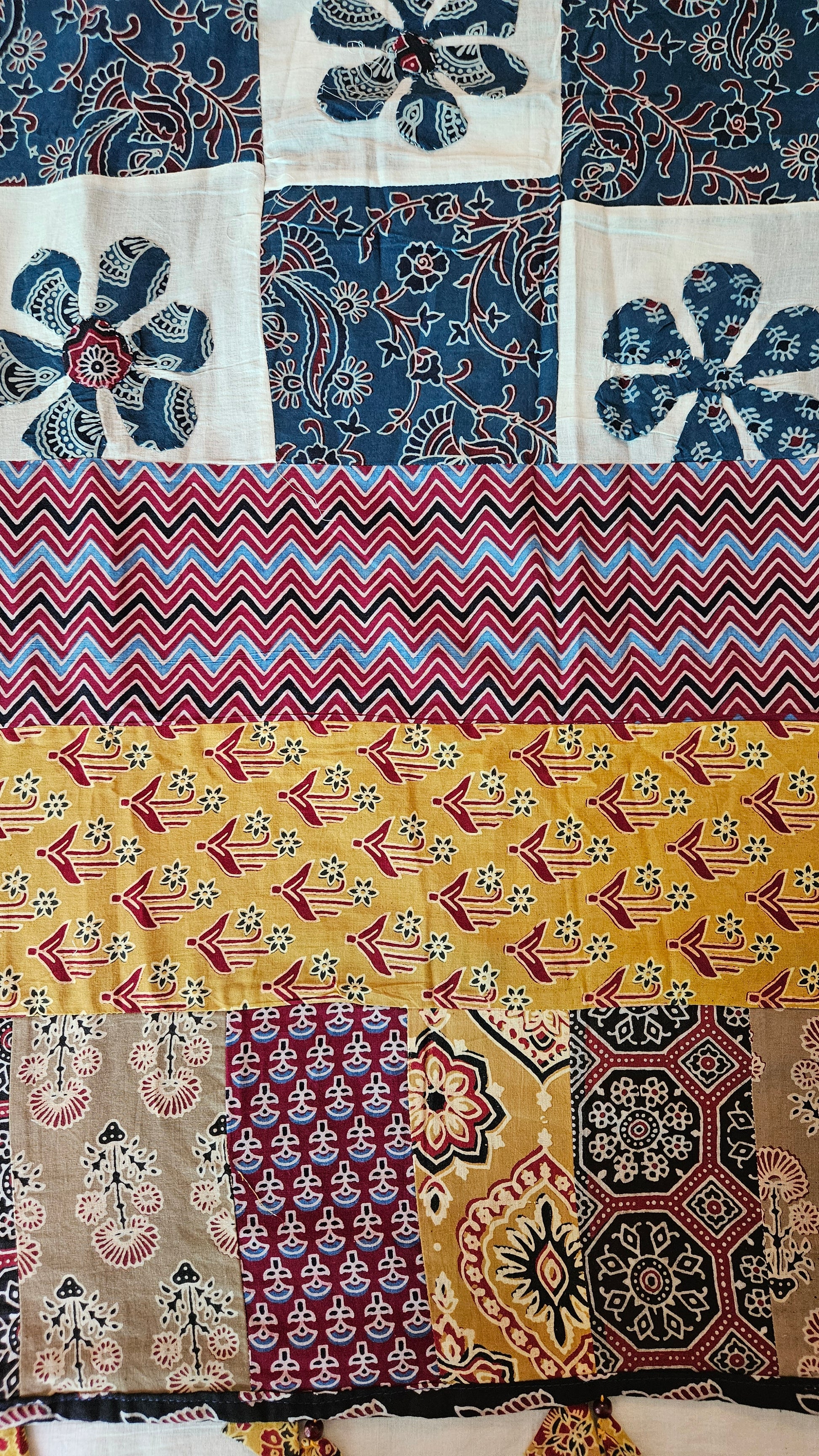 Mul cotton ajrakh print patch work dupatta material. -2.50mtrs.
