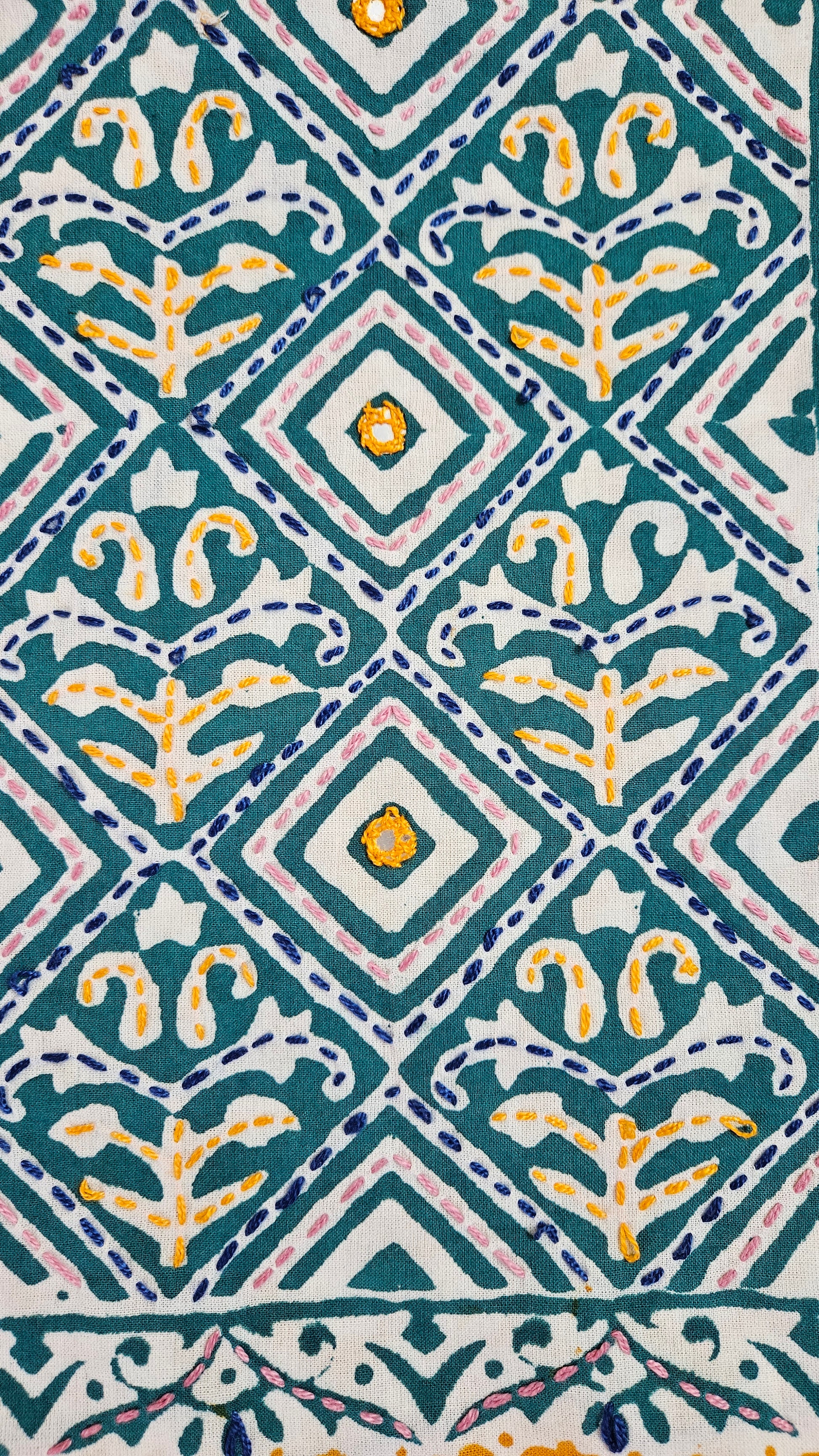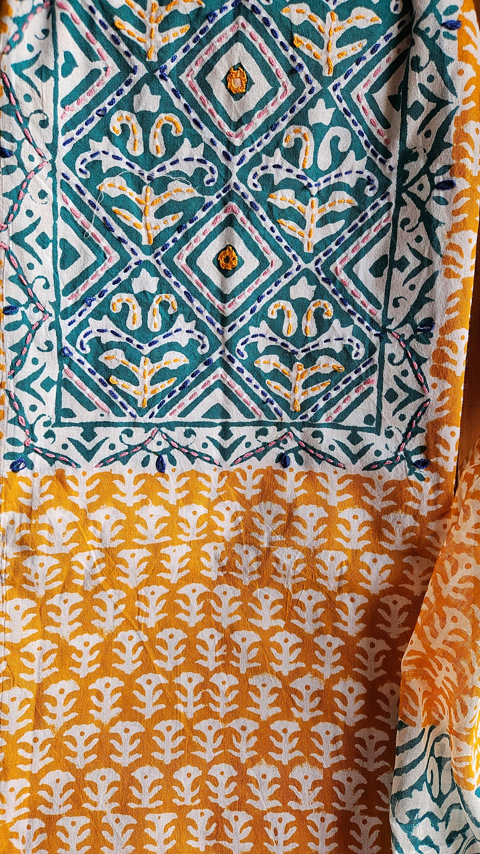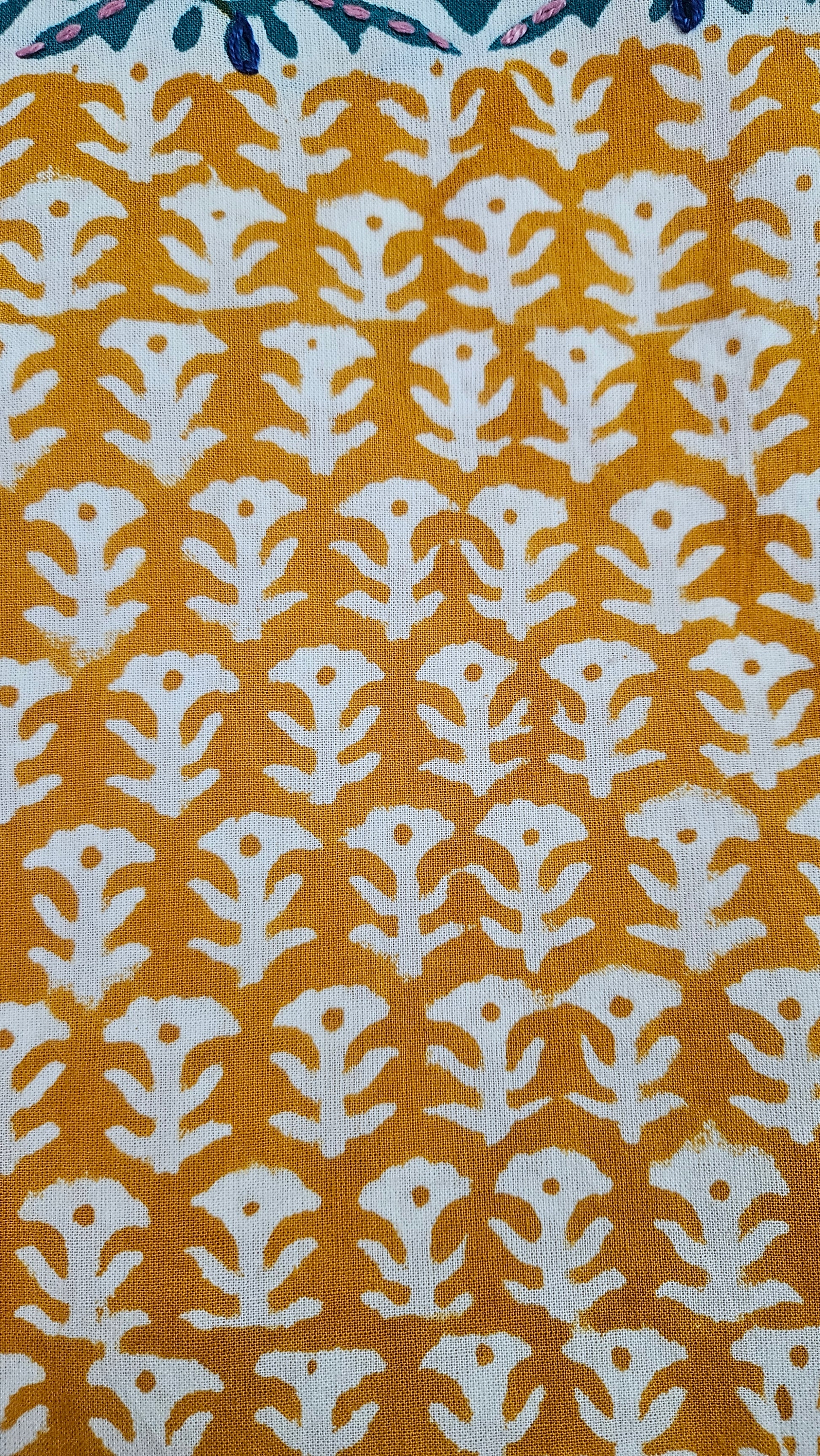 Mustard'n'blue Baroda print kurta material with embroidered yoke -2.50Mtrs