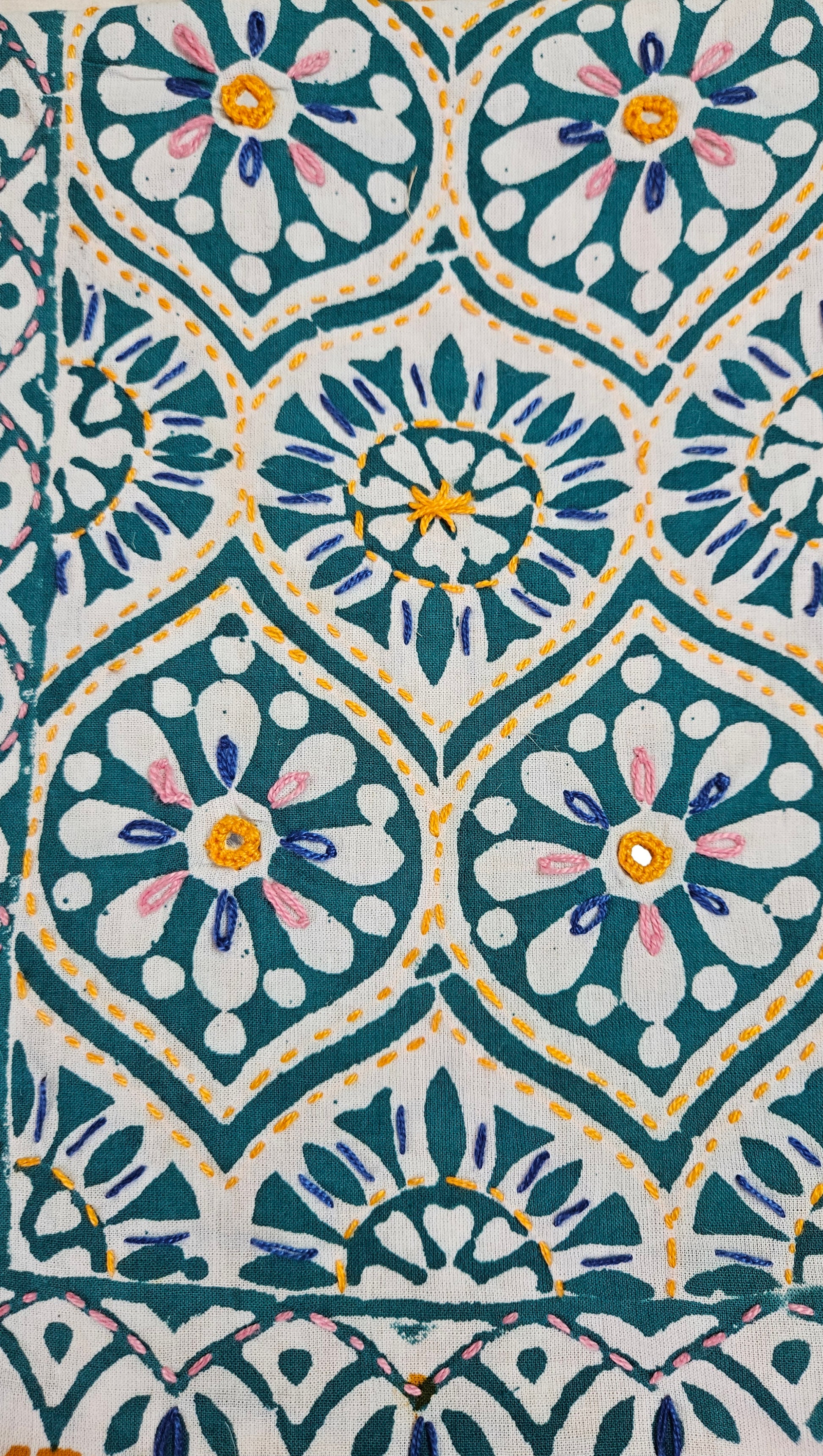 Mustard'n'green Baroda print kurta material with embroidered yoke -2.50Mtrs