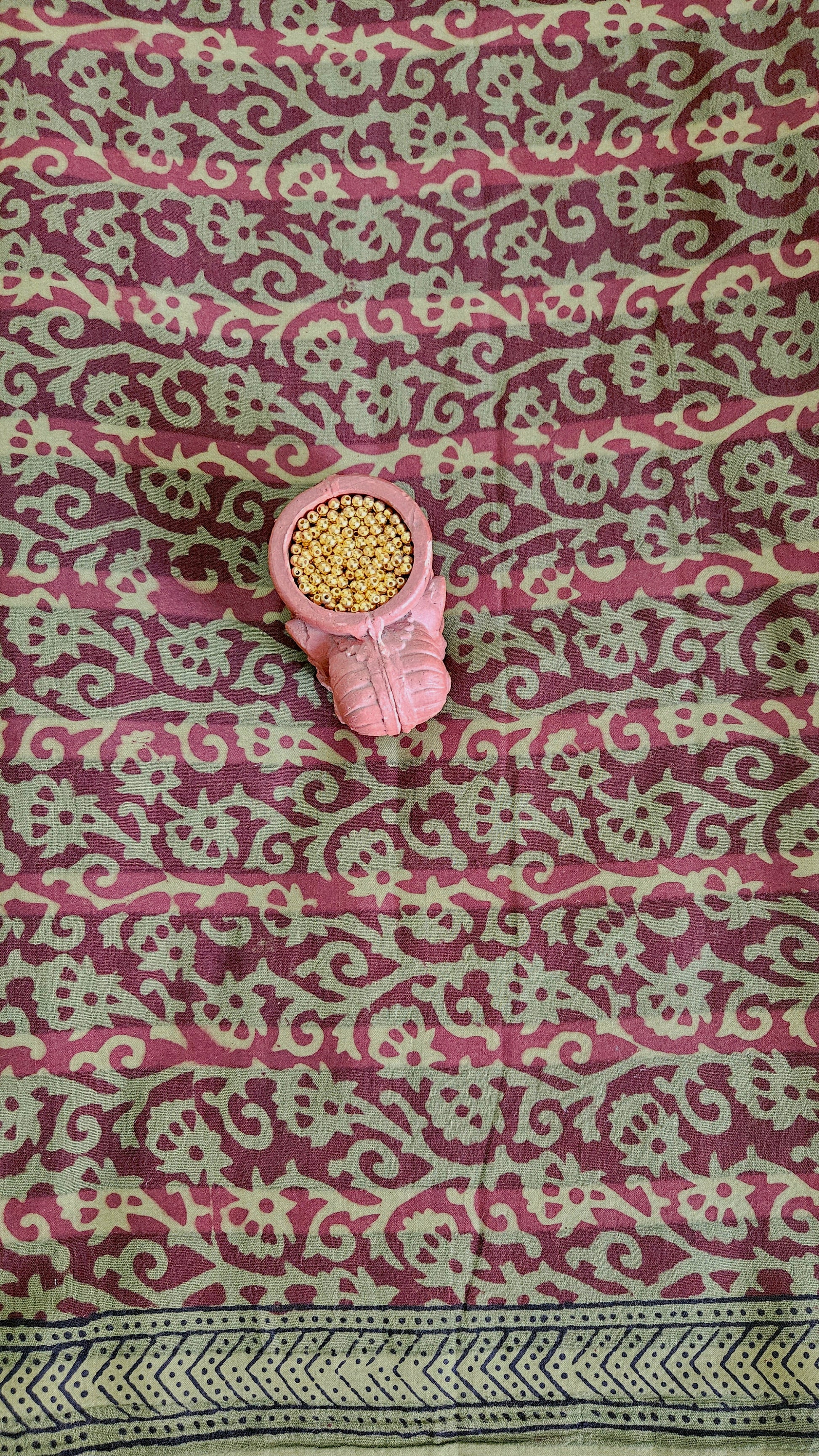 Olive green’n’maroon bagh print cotton bottom material. -2.50mtrs