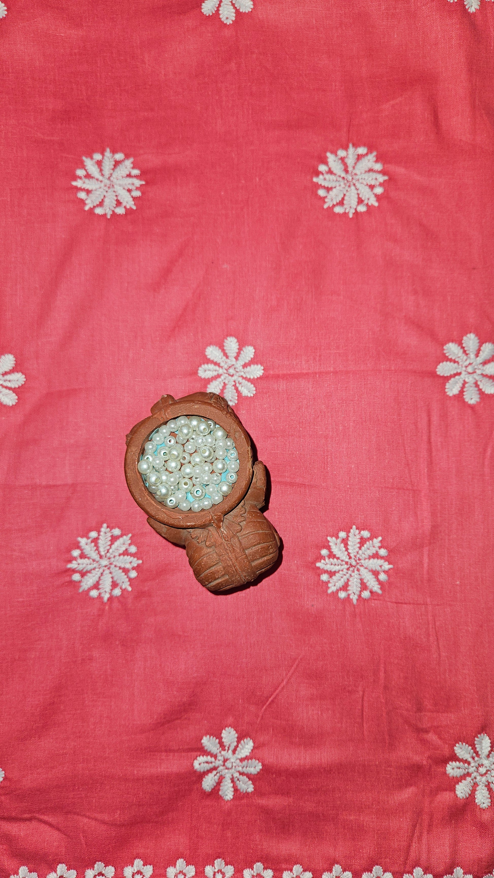 Pink chikankari bottom material with embroidered border and motifs -2.30Mtrs