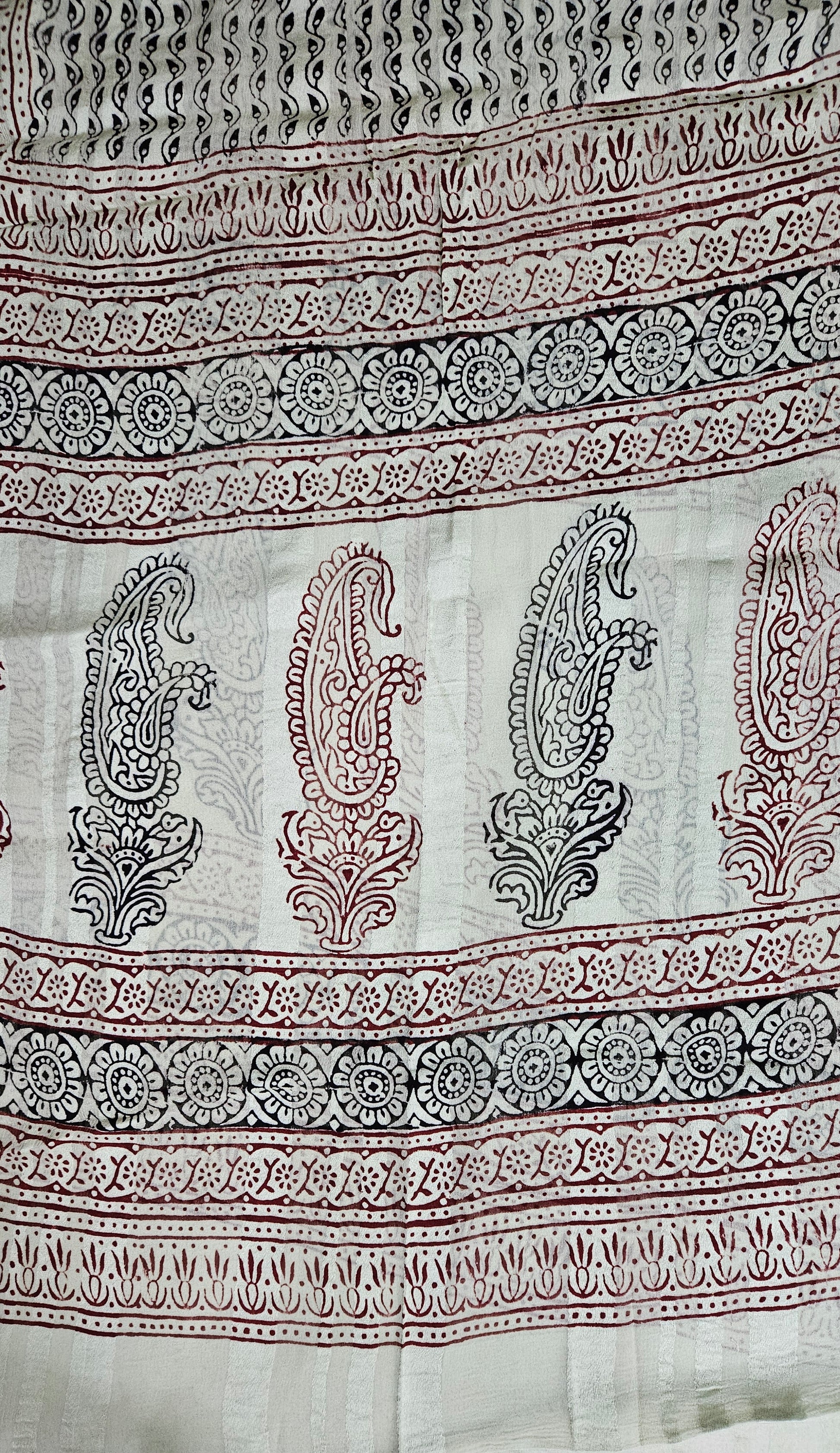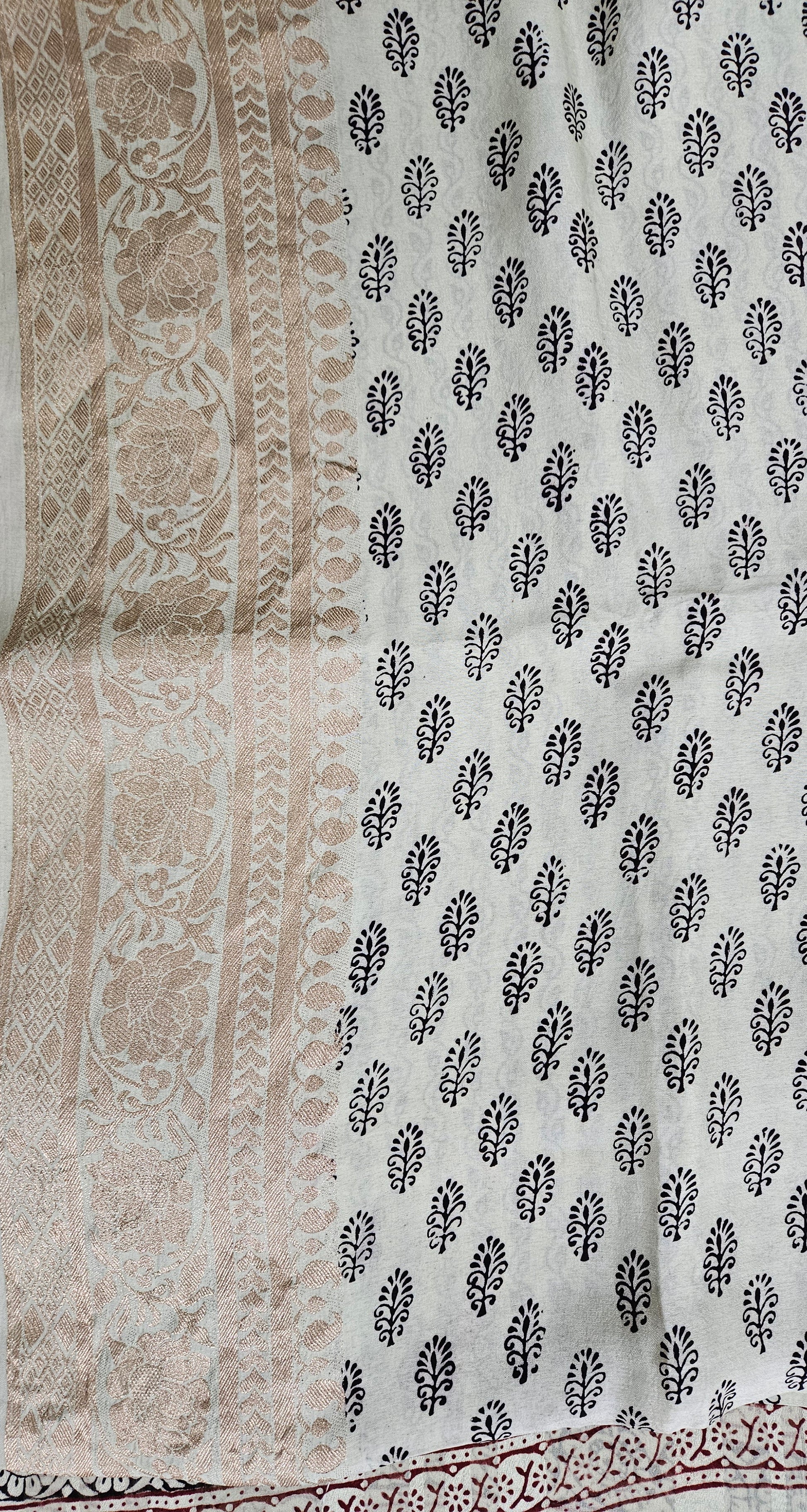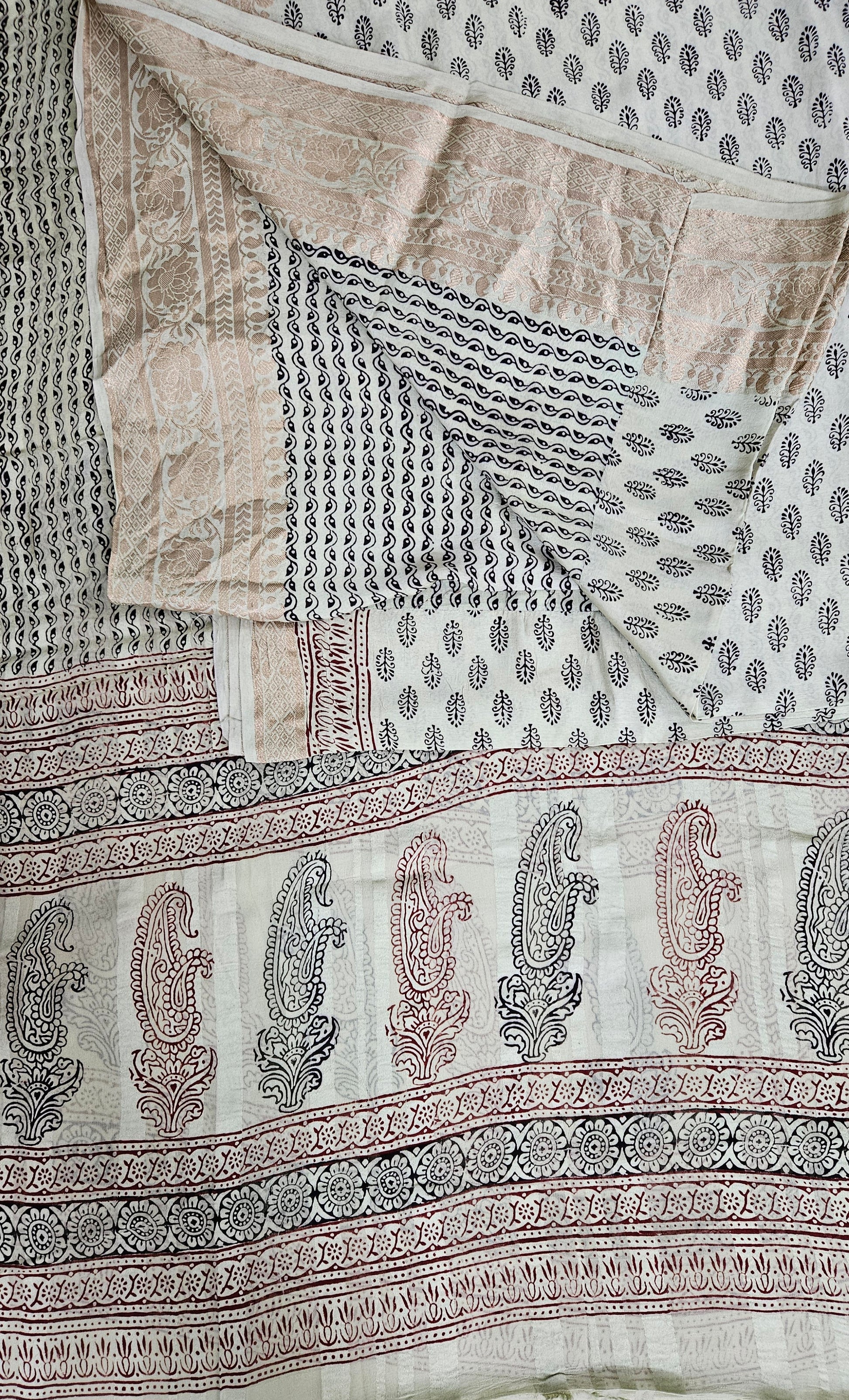 Pistagreen'n'black bagh print kurta with banarsi border -2.5Mtrs