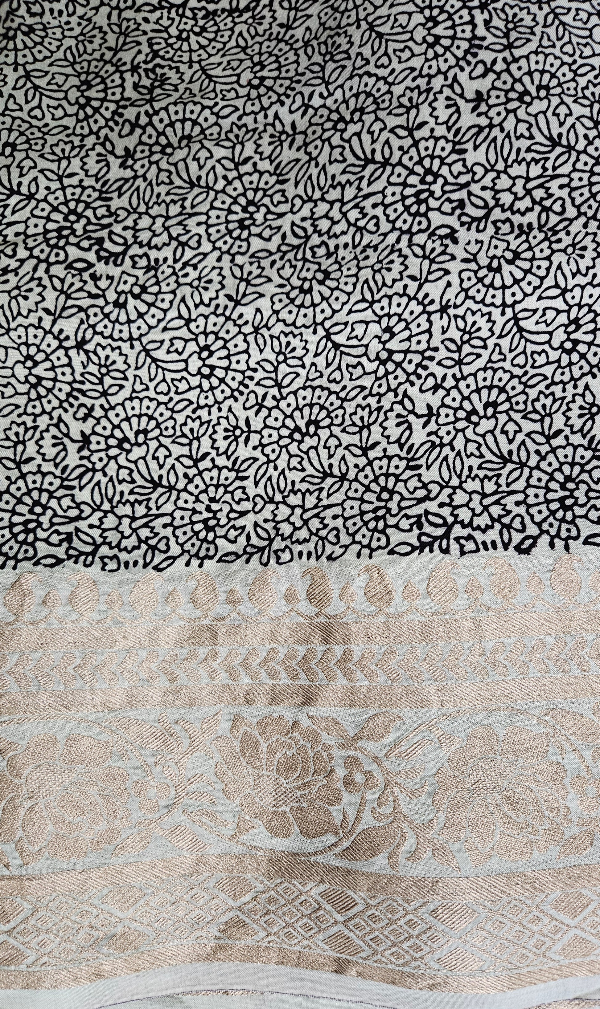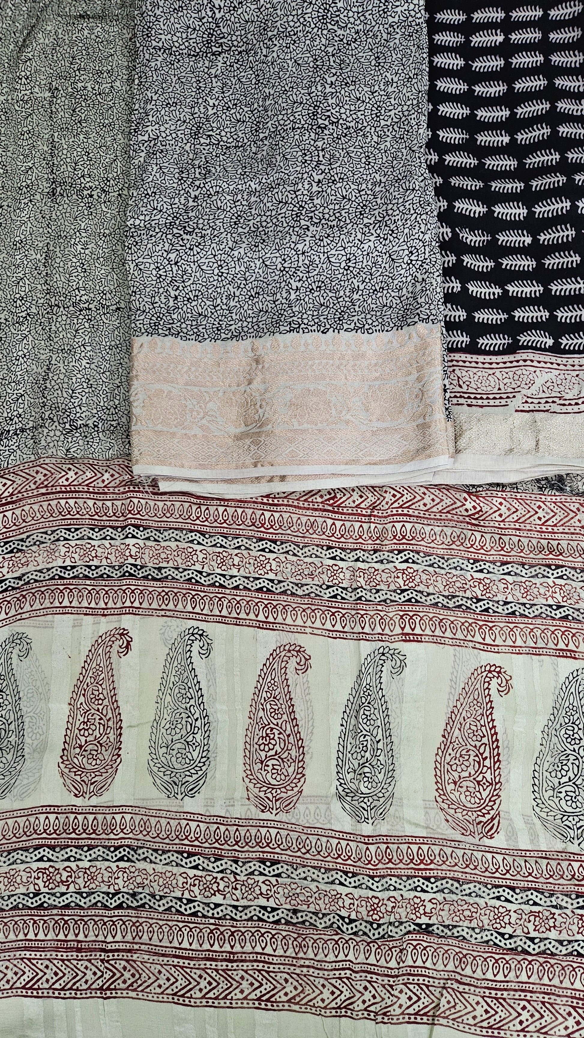 Black'n'pistagreen bagh print bottom with banarsi border -2.5Mtrs
