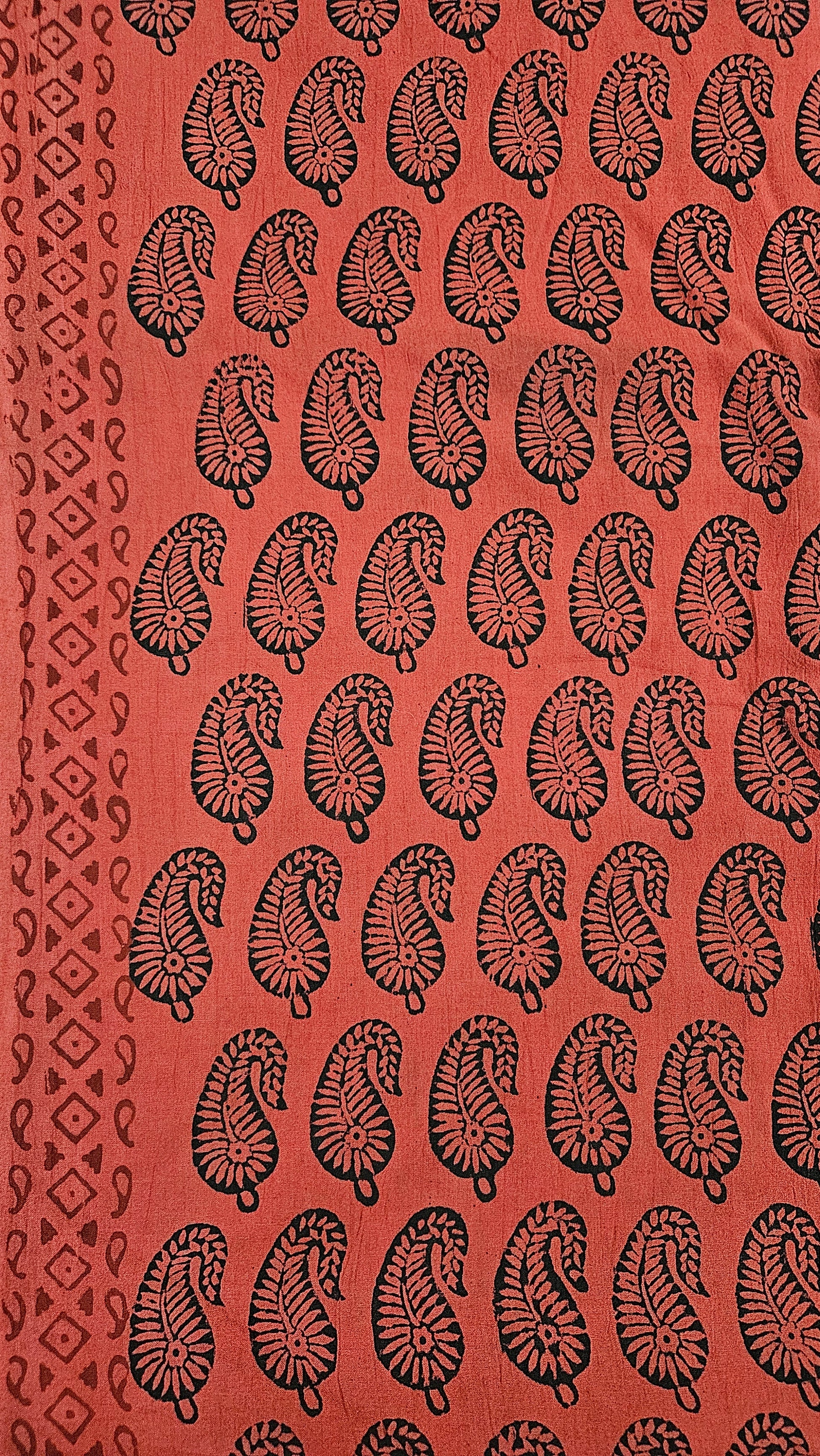 Red'n'black bagh print cotton kurta material with printed border -2.50Mtrs