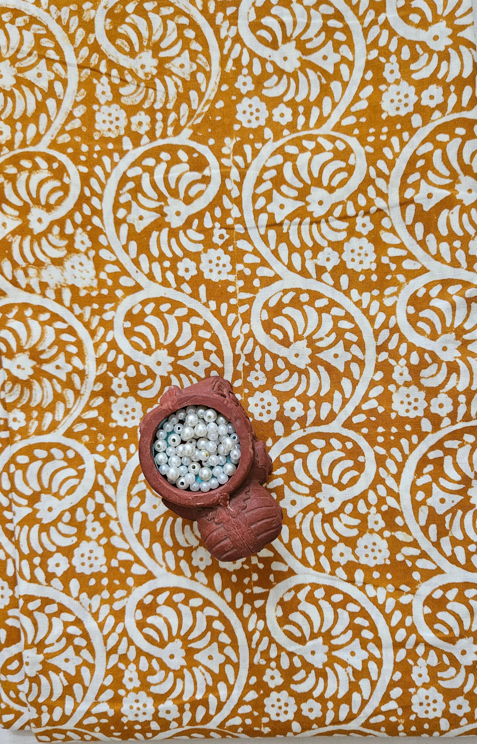 Mustard'n'white Baroda print bottom material -2.25Mtrs