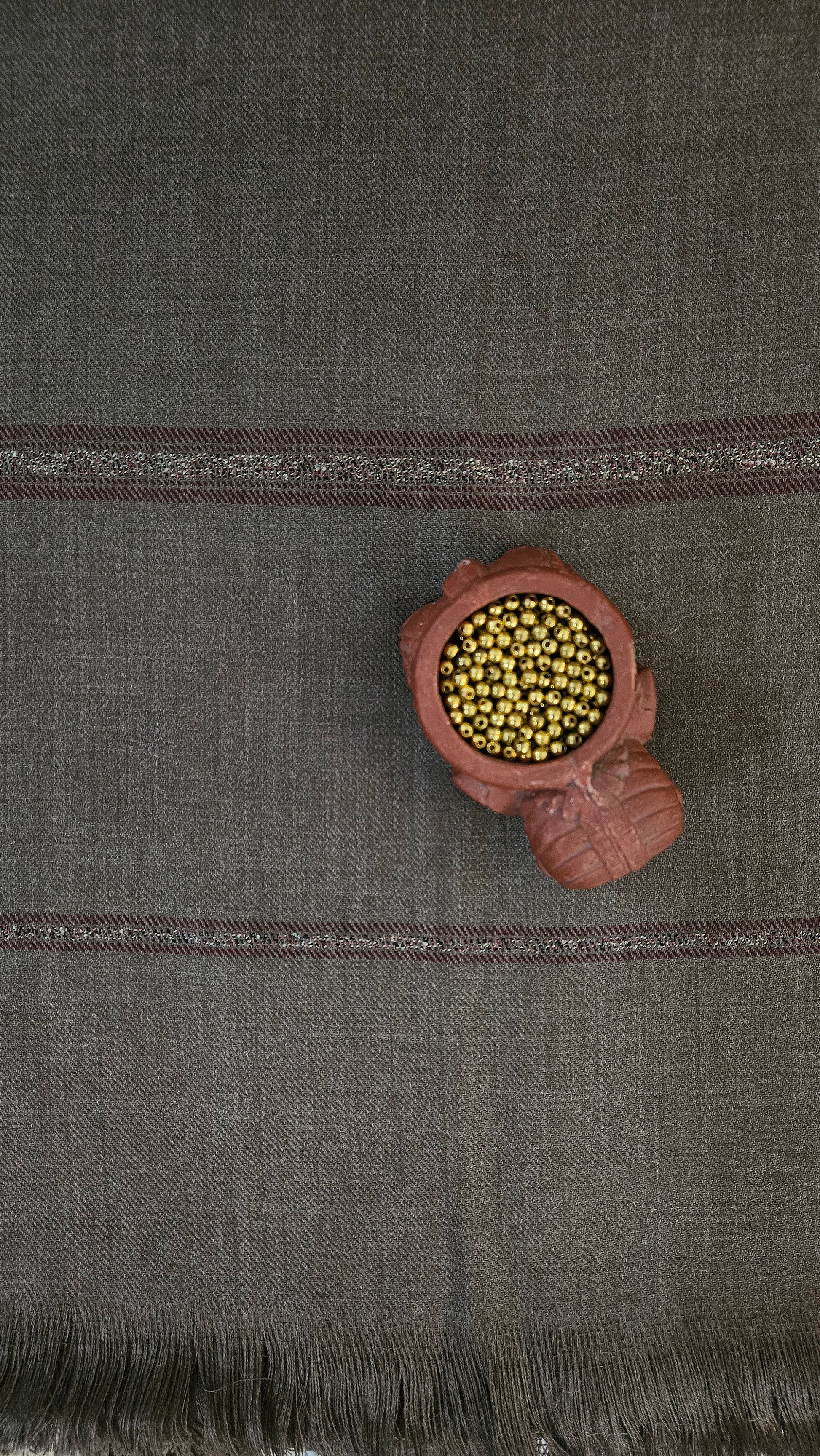 Pure wool brown colour gents lohi with sleek weaved border on both sides,length -2.65mtrs.