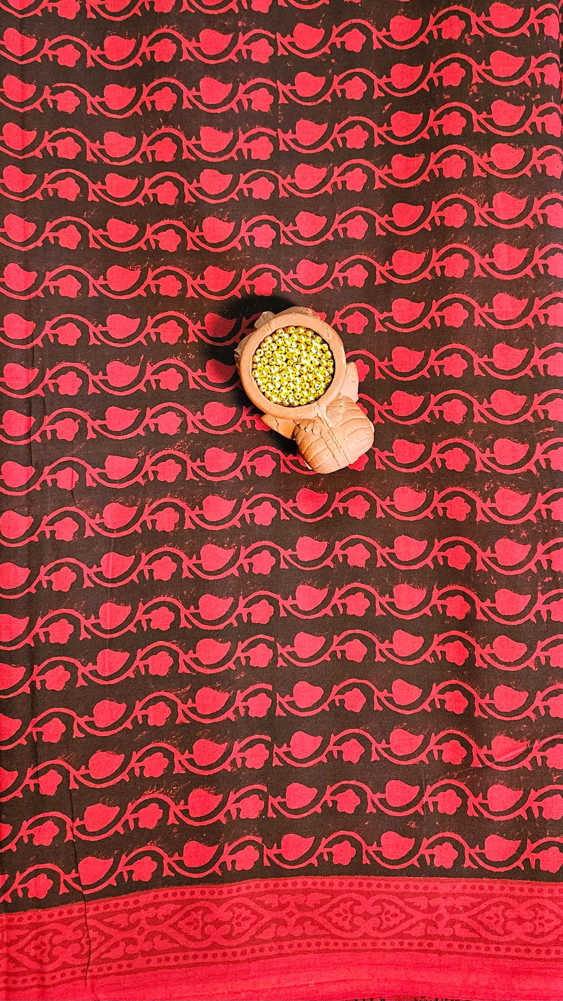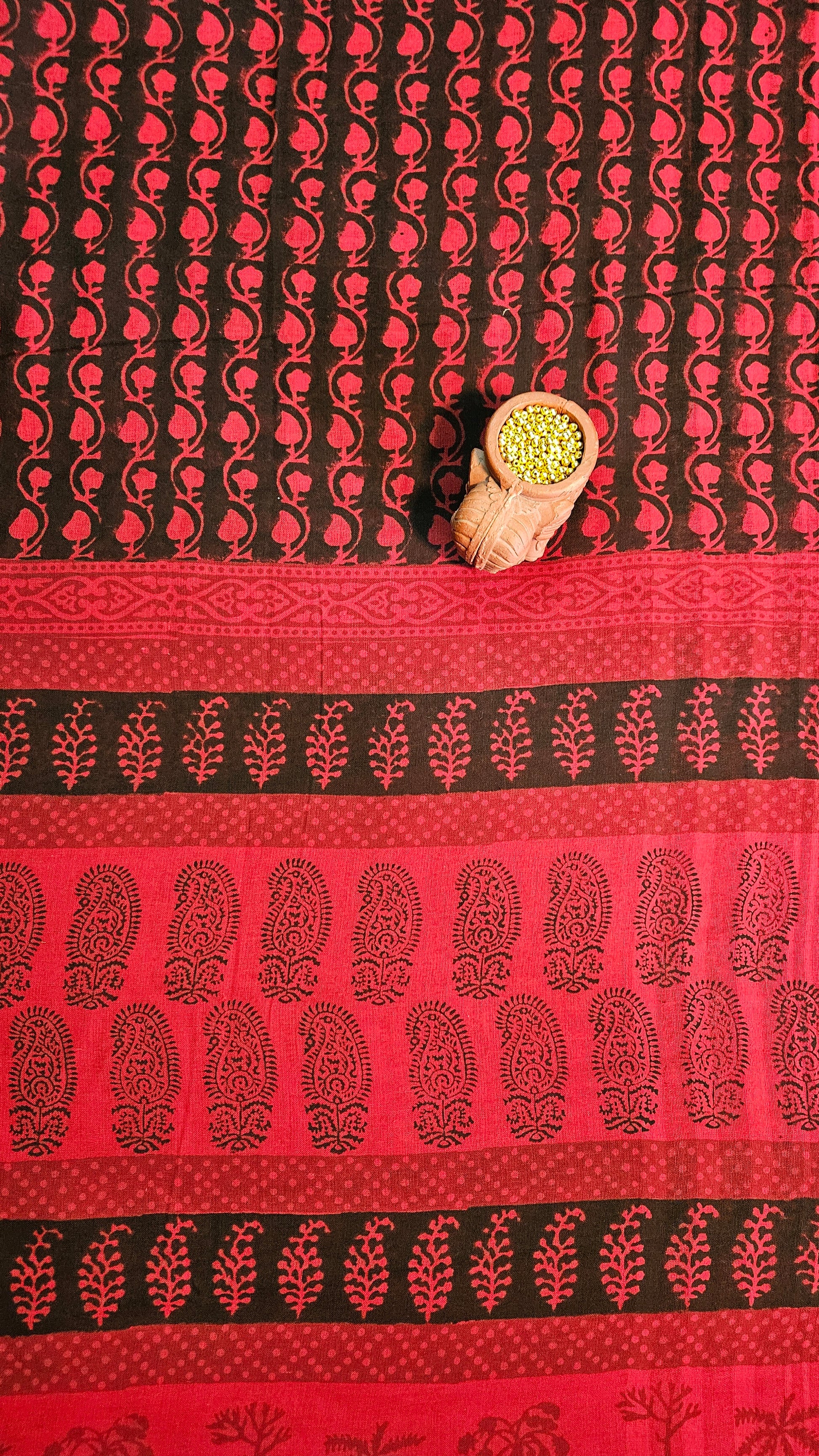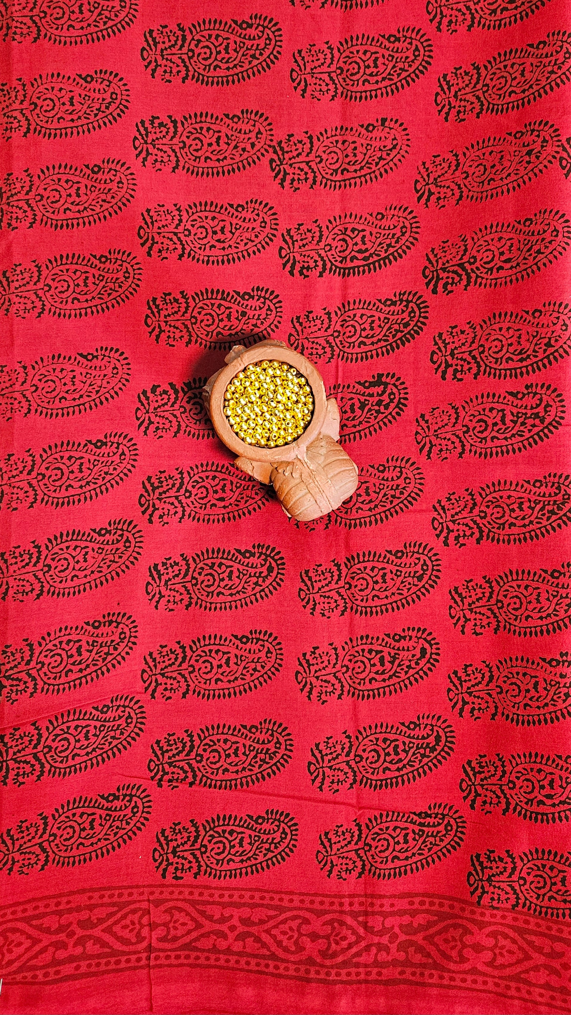 Black’n’red bagh print cotton bottom material. -2.50mtrs