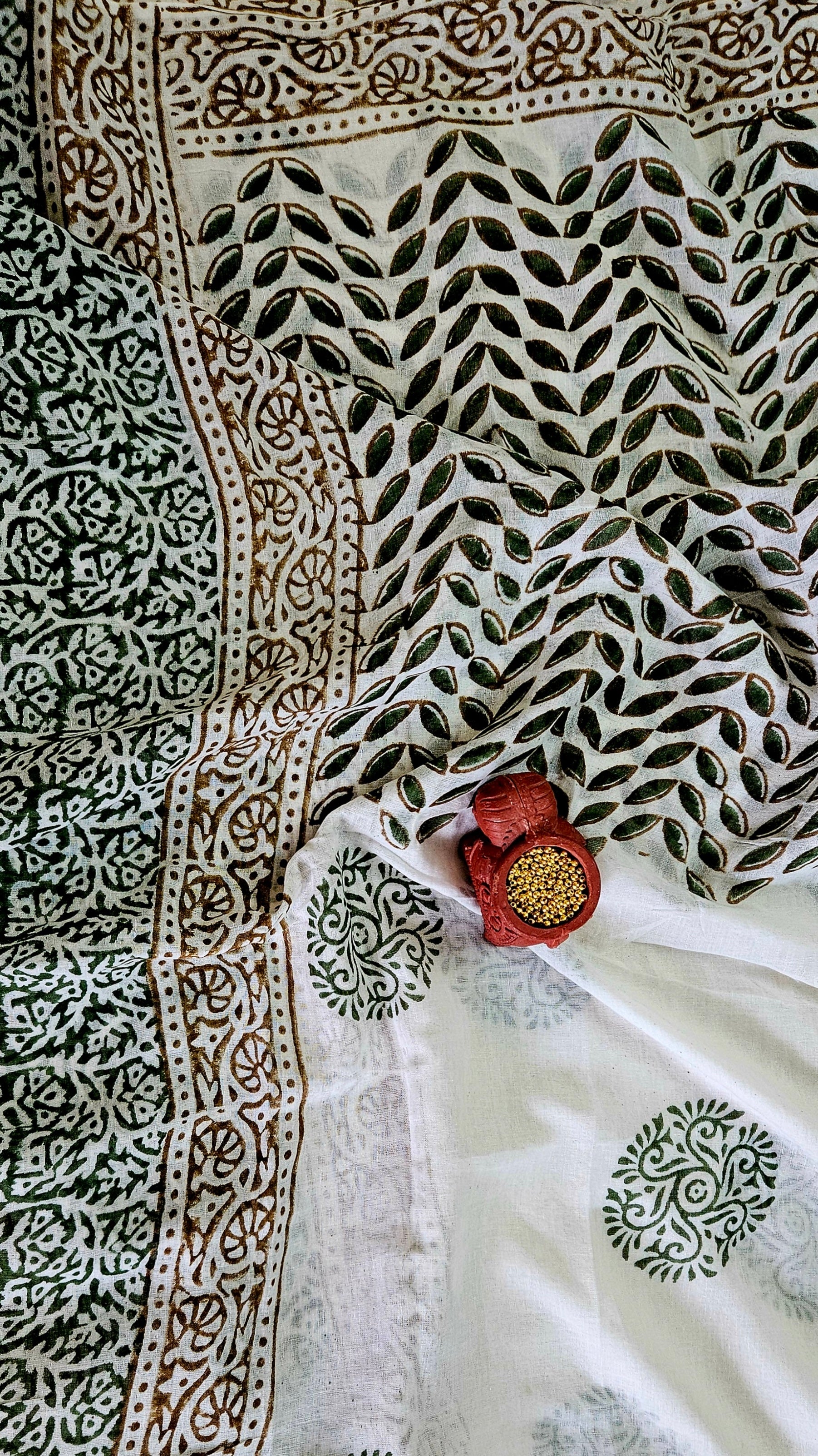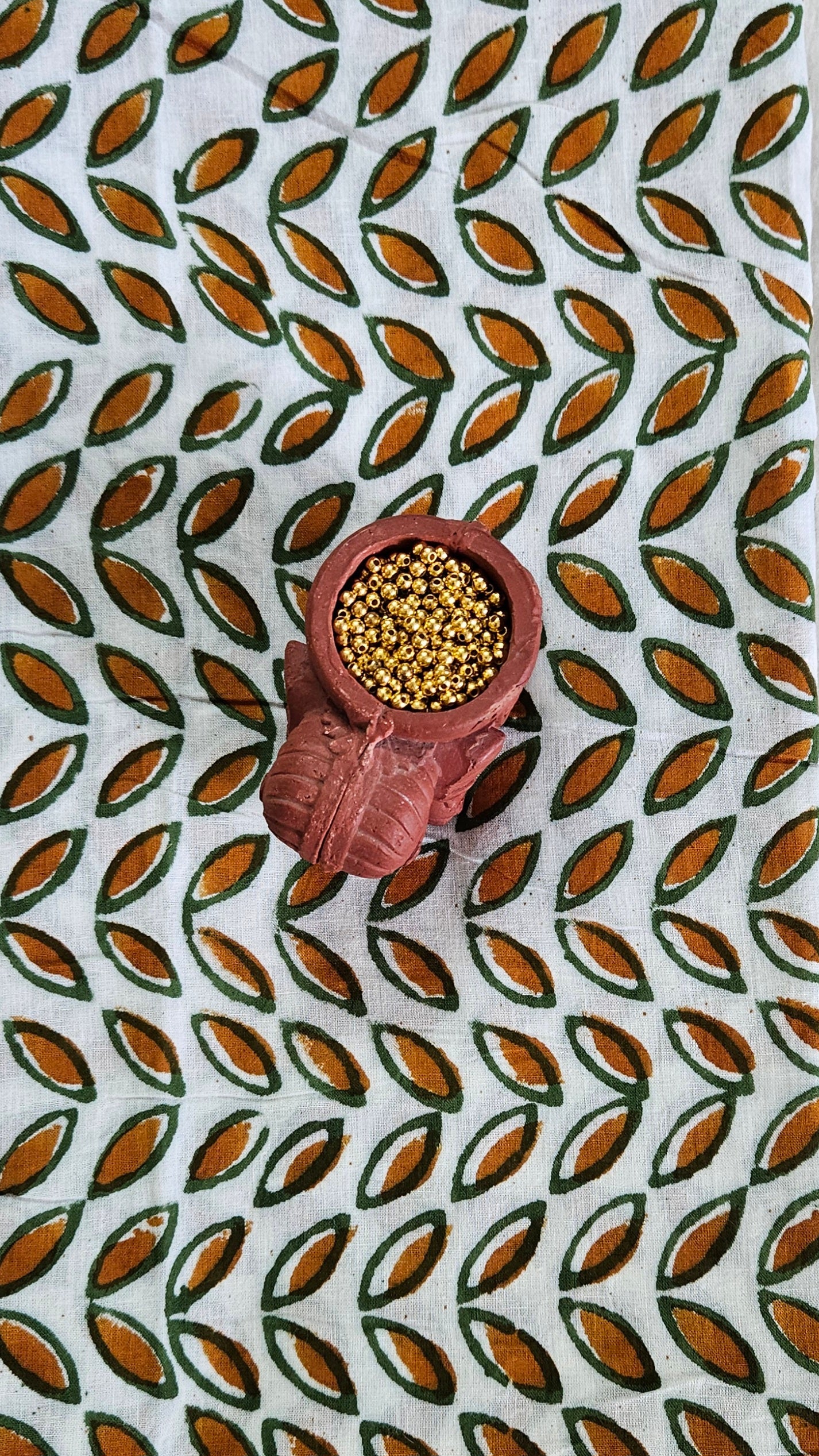 Green’n’mustard Baroda print mul cotton dupatta material. -2.25mtrs.