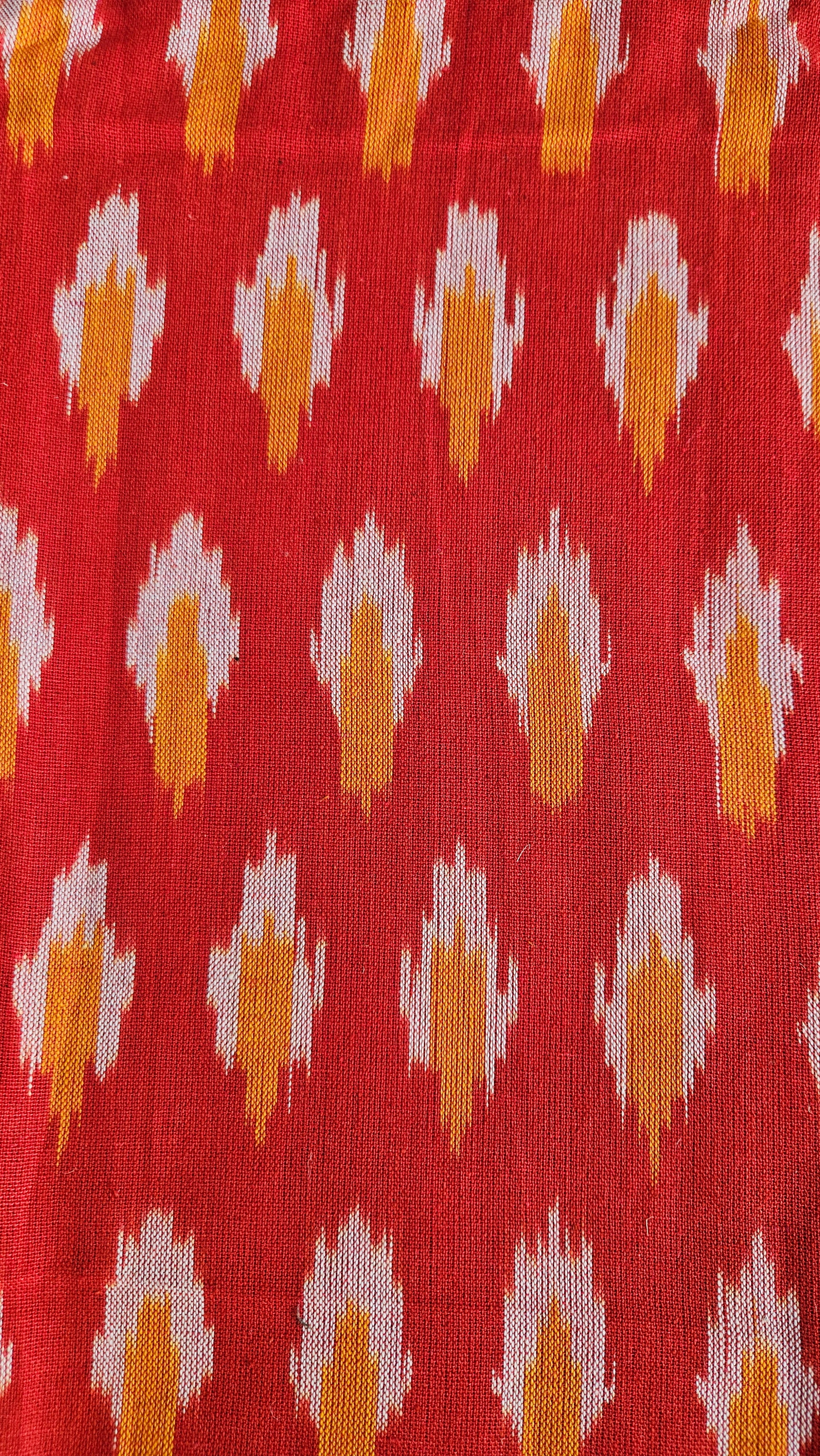 Vermillion'n'mustard ikat weave cotton kurta material -2.50mtrs.