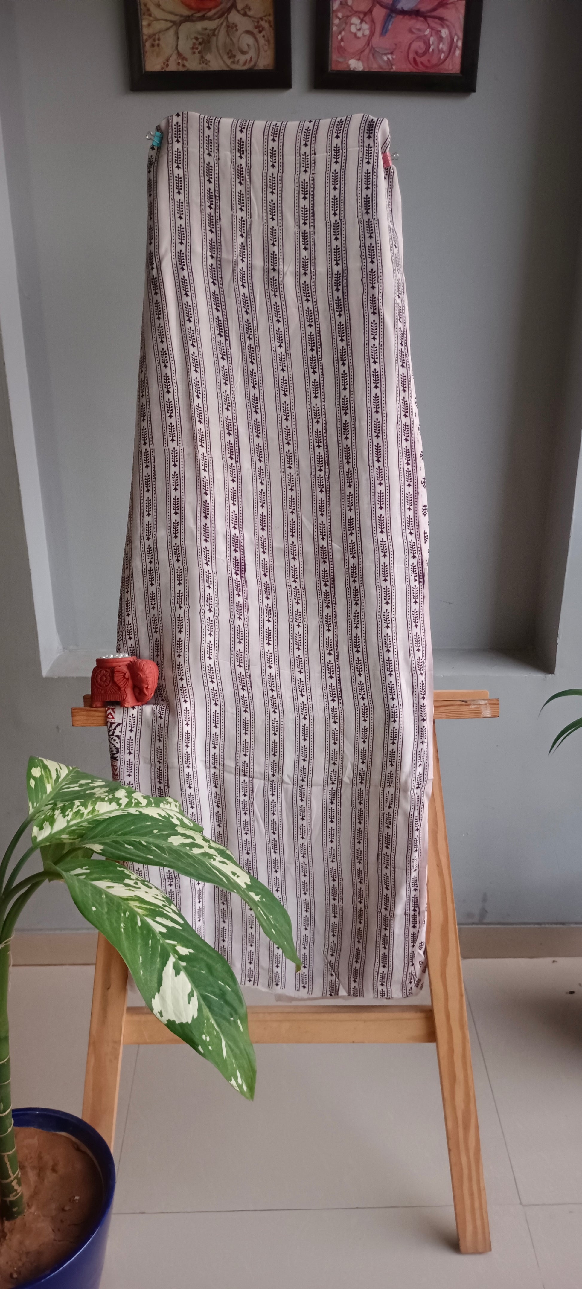 White Black'n'red bagh print crepe material with border printing on ghera.