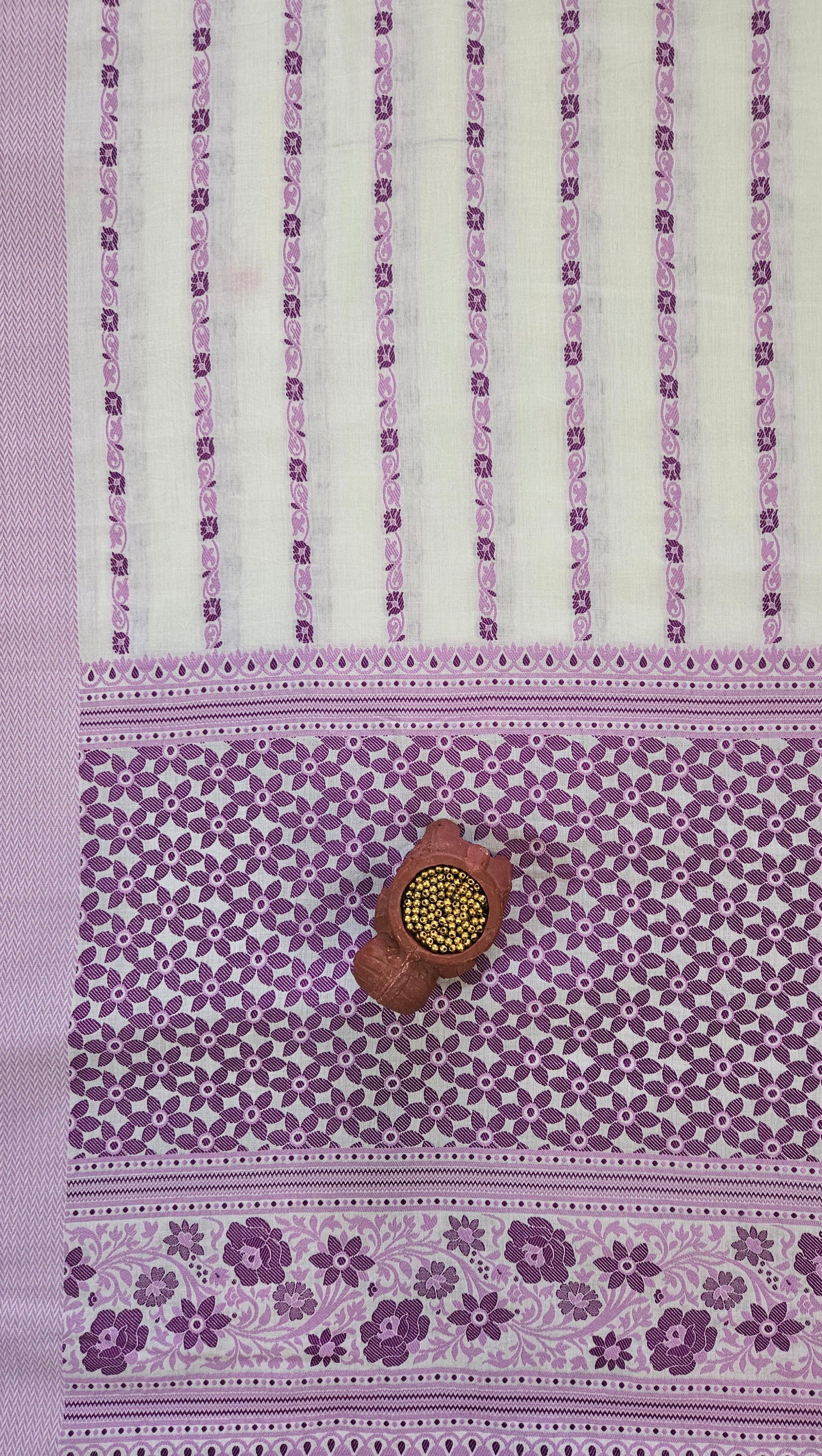 White'n'purple premium cotton banarsi resham weave dupatta with broad boarder on two sides of the pallu -2.50mtrs